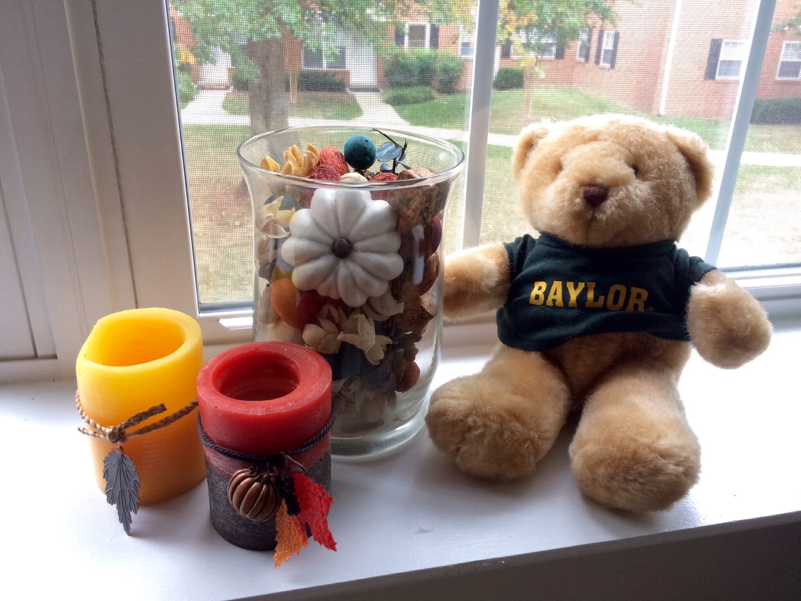 Today I’m joining the rest of the blogging community by posting about the changing of the seasons. I thought it would be fun to share some of my fall decorations. We don’t have too many, but I have really enjoyed collecting a few new things each year. One day I hope to have a huge collection of fall items to display around my home! The only two times of the year that I do much seasonal decorating are fall and Christmas, so it is really special to me when fall rolls around and it’s time to spice up the apartment!