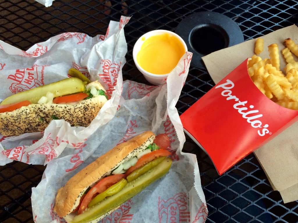 Somehow, we were able to stuff one more meal into our faces before we wobbled onto the flight home. Portillo’s is a well-known Chicago fast food restaurant. We really wanted to have a Chicago hot dog before we left, and this was the perfect place to get it!