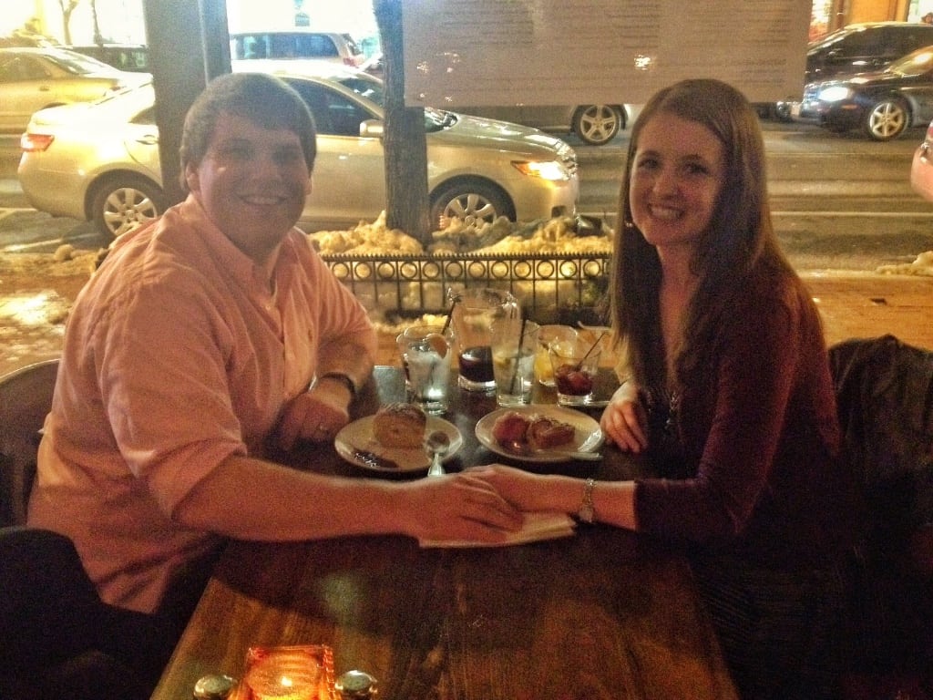 After a really stressful two-week work trip to Memphis, TN, and after not being able to make it back in time for my husband’s birthday, we celebrated both Valentine’s Day and Daniel’s birthday with tapas and a movie in downtown DC. Excuse the terrible picture quality, but this is the only image we have from that night….