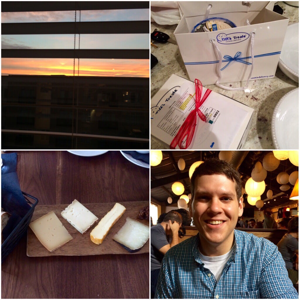 (1) One weeknight while I was working late at home, I peeked out my window and saw this beautiful sunset. It brightened up the whole evening. Daniel was out of town hiking the Appalachian Trail all week, so I kept my evenings busy with work, phone calls with friends and family, and fun little moments like this.