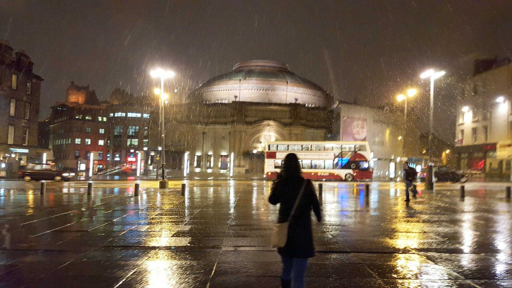 Once Daniel got back from the hike and got ready, we headed off to our last dinner in Edinburgh. We picked The Devil’s Advocate, a bar and kitchen advertising seasonal Scottish cuisine in a modern dining environment. On our way to the restaurant, it started snowing!