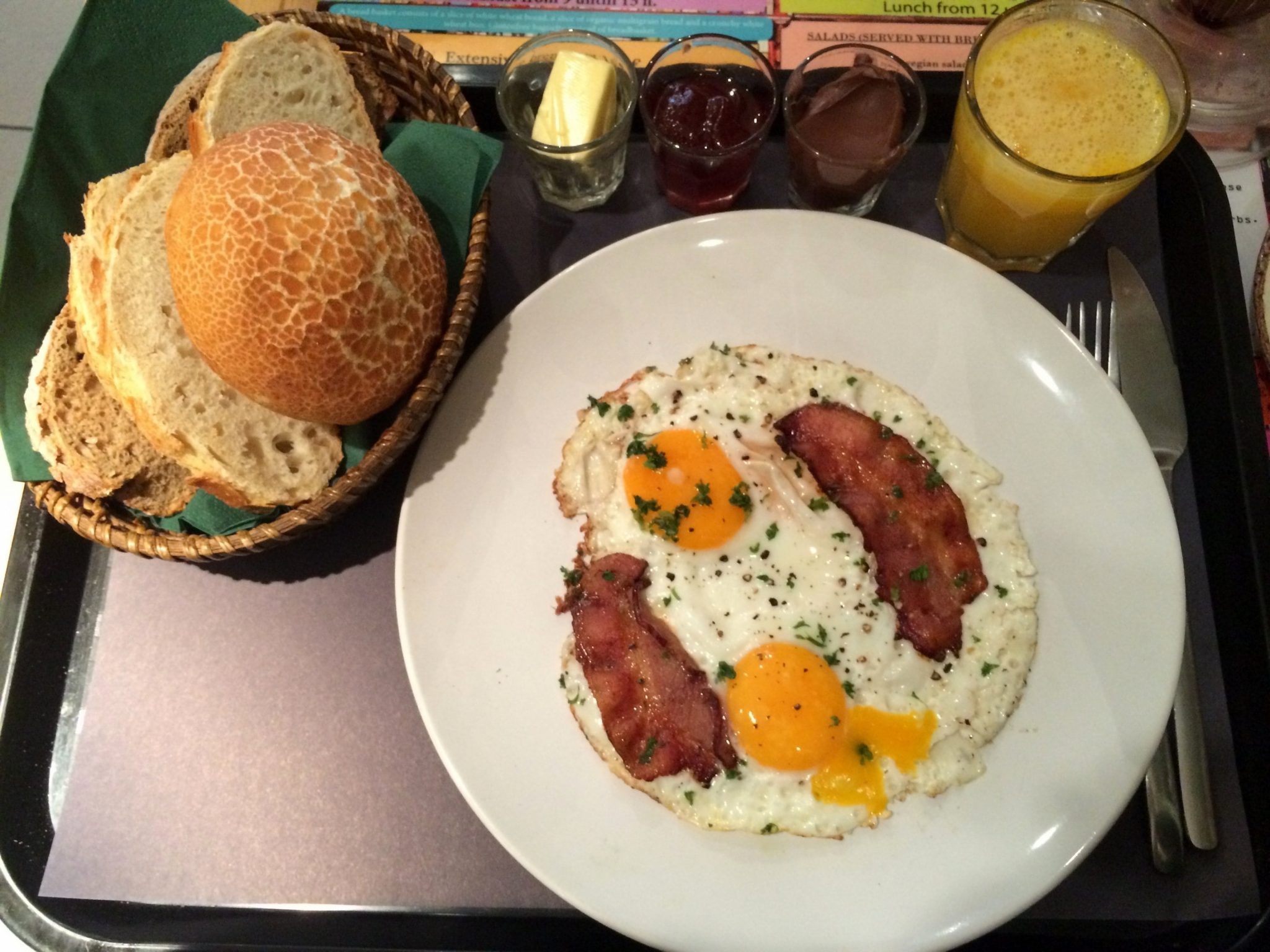 The food was fresh and delicious! We also had a short conversation with owner who is very passionate about…. you guessed it…. books and brunch and also his beautiful city.
