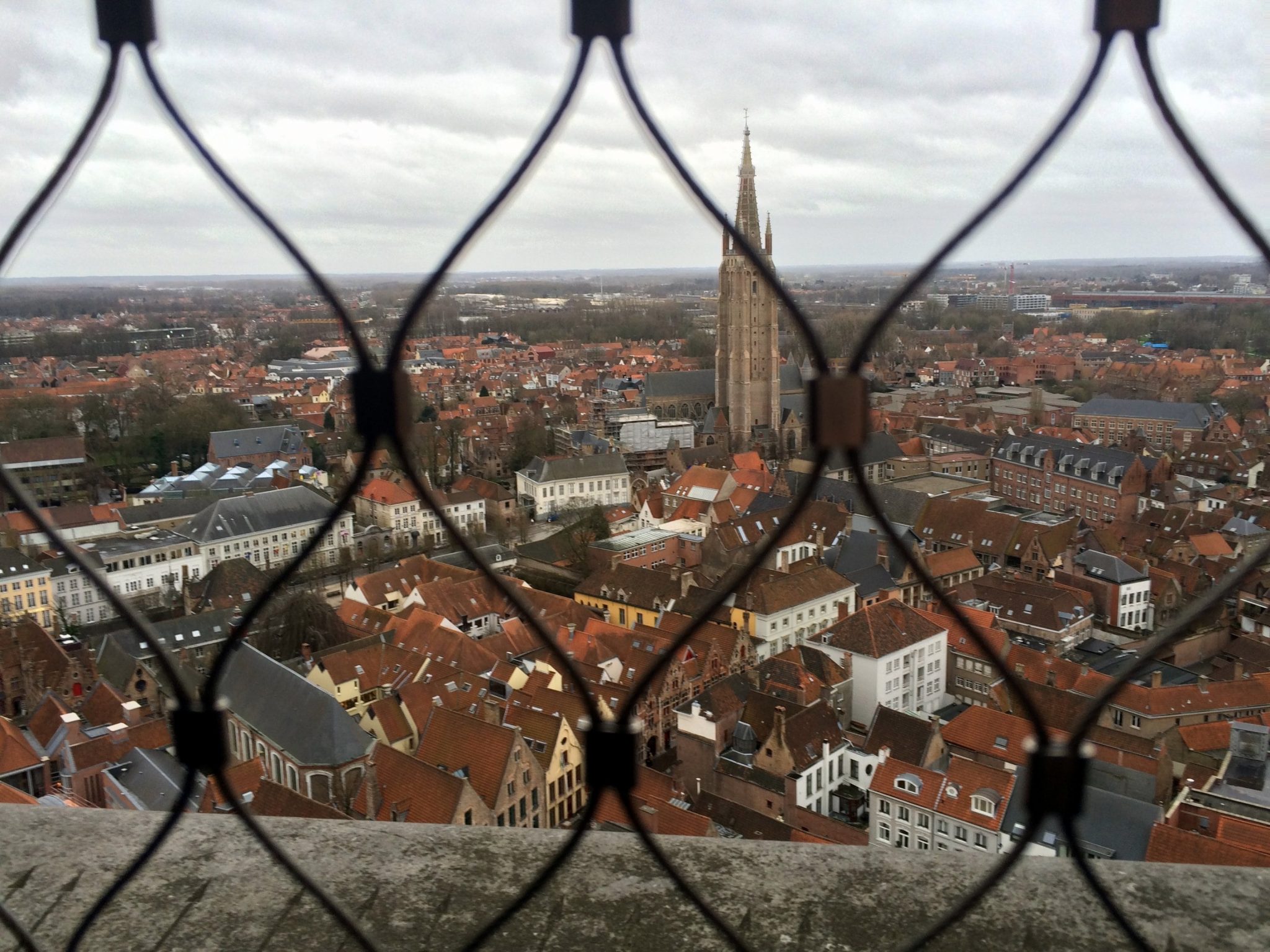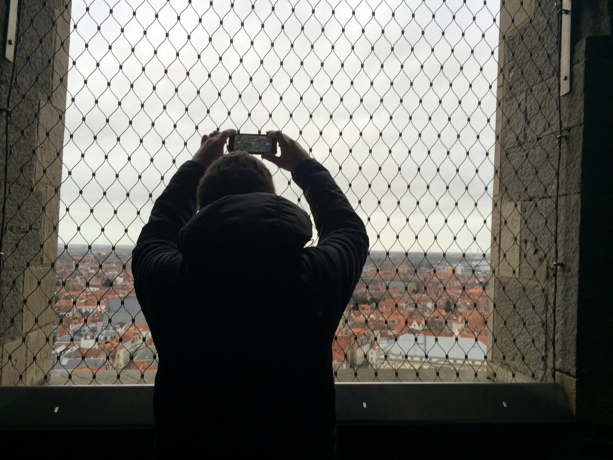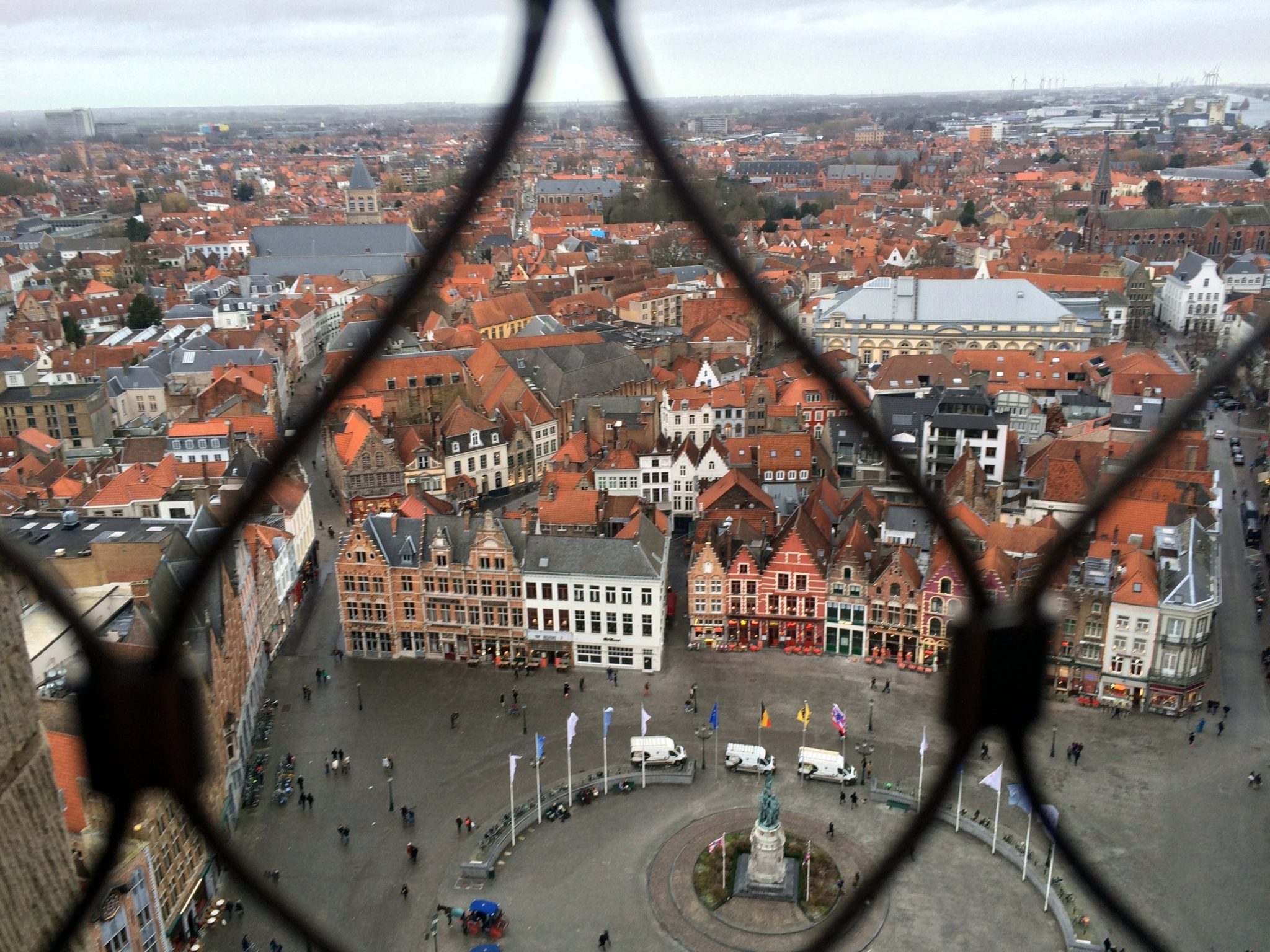 So, after purchasing our city cards, we began the climb up the Belfry Tower. It’s 366 steps to the top, and the passage gets narrow and steep, so it’s not a leisurely stroll up. At various intervals there are stops where you can take a break and read about the history of the tower. At one of the stops, you can watch the bells chime if you are there at the right time.