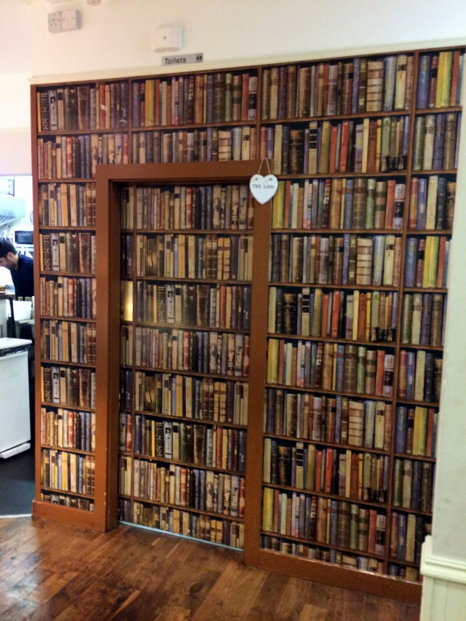 We especially loved the “hidden passageway” covered by bookcase wallpaper.