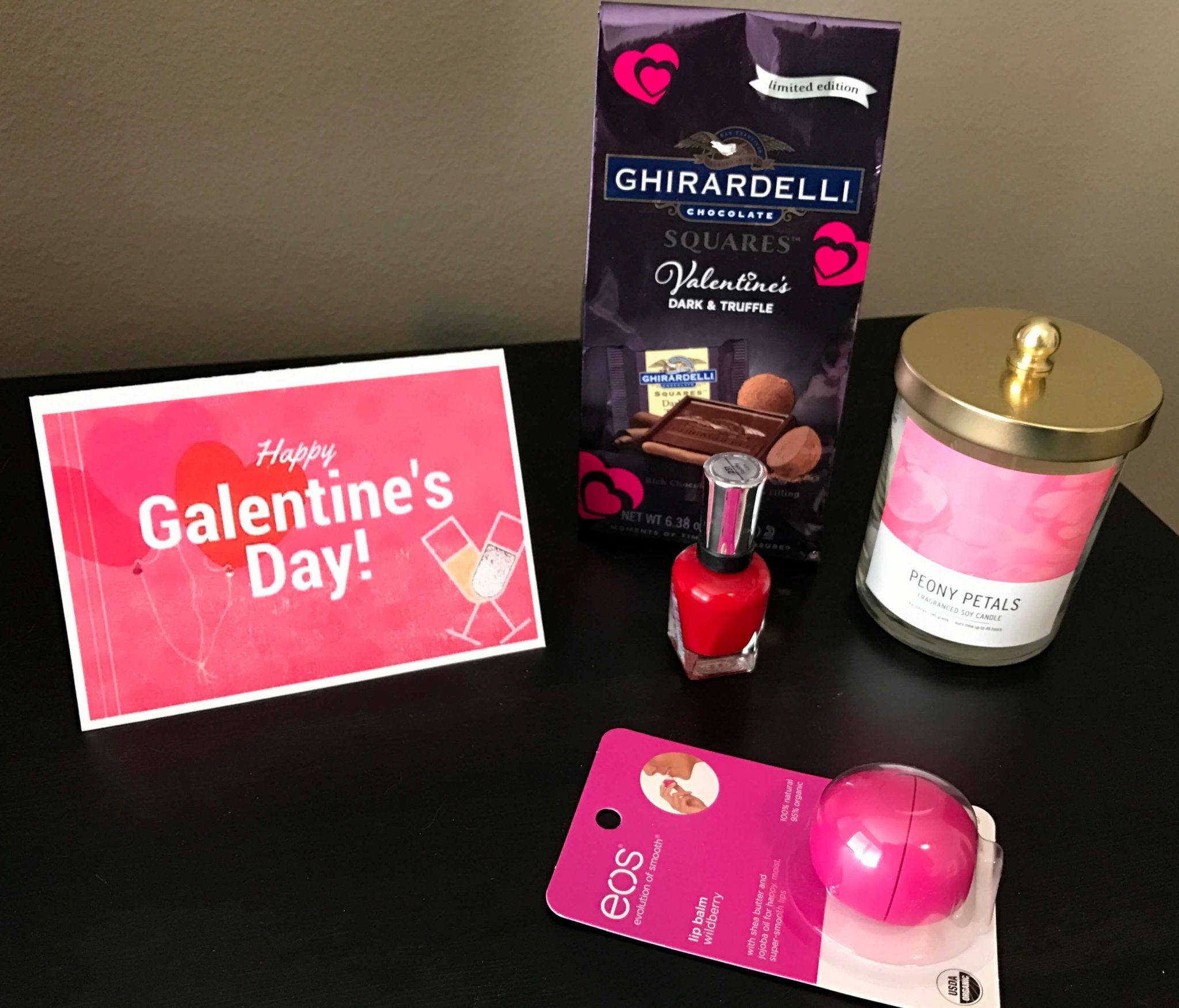 Also this week, I received my package for the Galentine’s Blogger Exchange hosted by Olya from The Siberian American and Mattie from the Northwest Native Blog. I received my box from Lacey from The Perks of Being a JAP. It was a box full of some great Valentine’s Day treats including Ghirardelli chocolates, a peony candle, an pink EOS lip balm, a beautiful red nail polish, and a sweet card. Thank you, Lacey!