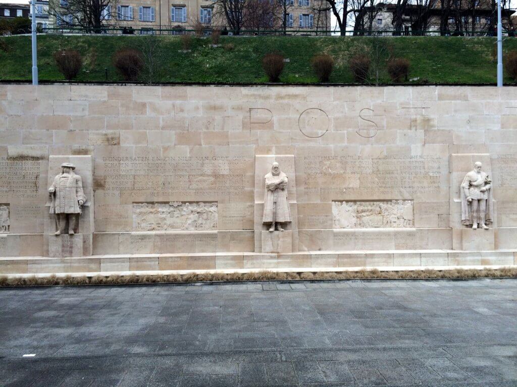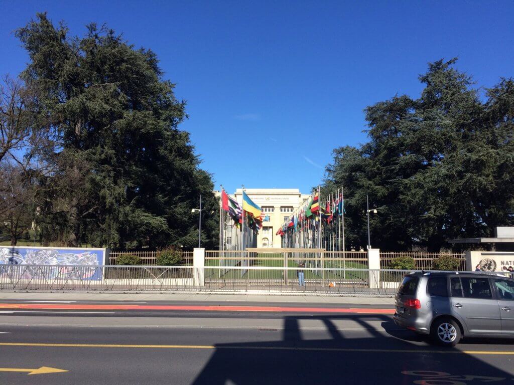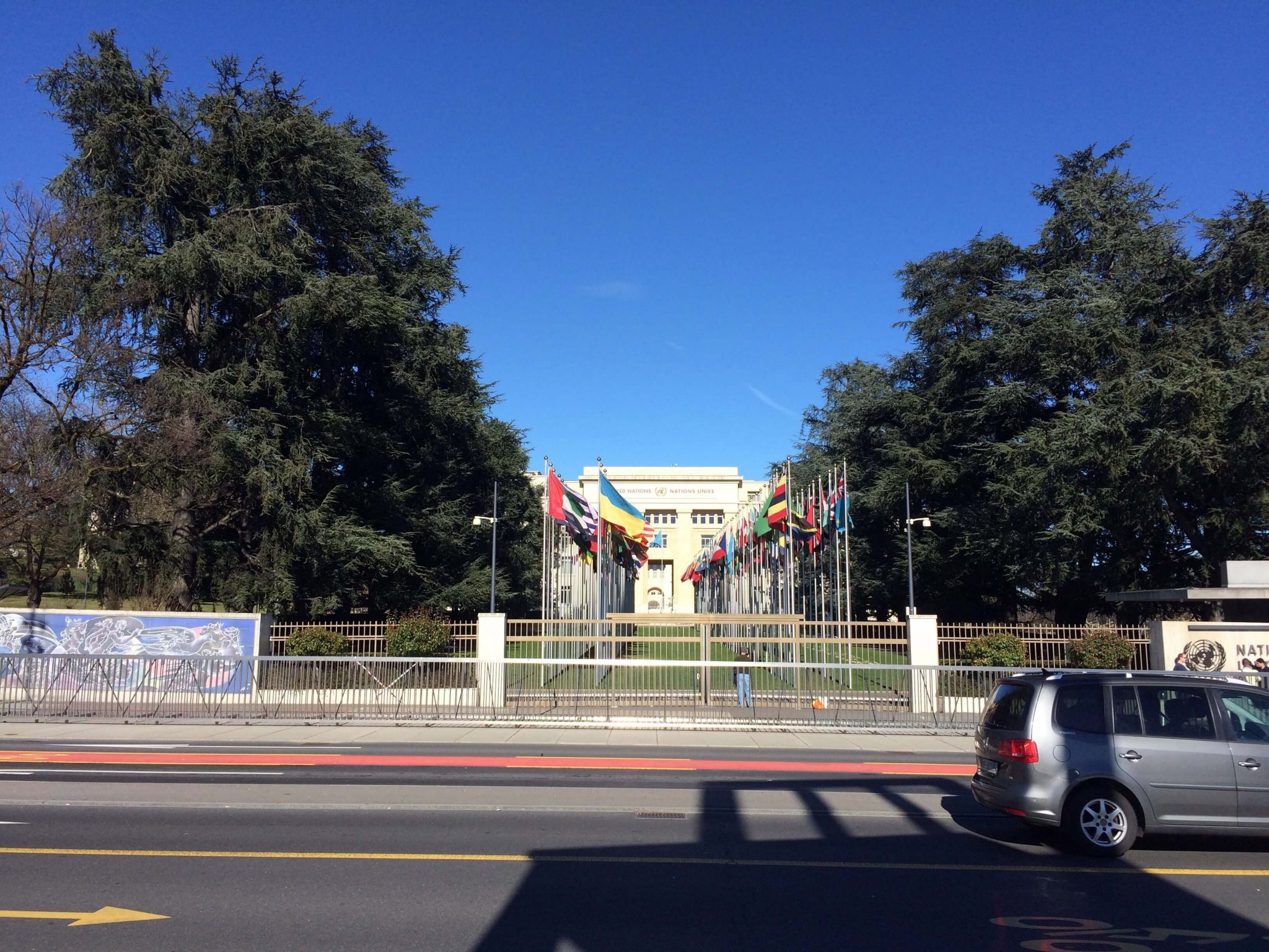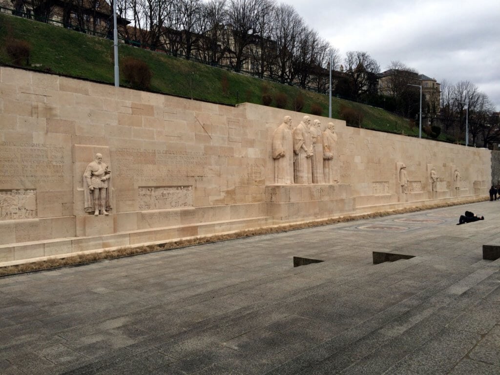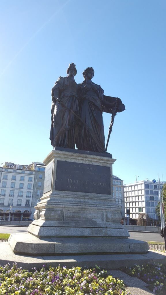 After the morning tour (which lasted about 2.5 hours), we grabbed a quick grocery store lunch and headed over to the meeting point for our second tour. We almost didn’t go to the second tour because we were tired, but we are glad we didn’t skip. The second tour was called the International Geneva Tour and focused on the Geneva as the home of the United Nations headquarters, the World Health Organization, the World Trade Organization, and several other major political organizations. The tour started by the Broken Chair, a 39 foot monument representing opposition to cluster bombs and land mines in response to the Ottawa Treaty, signed in 1997.