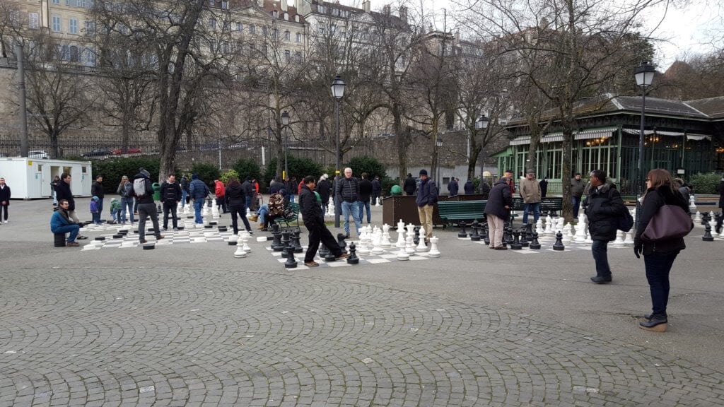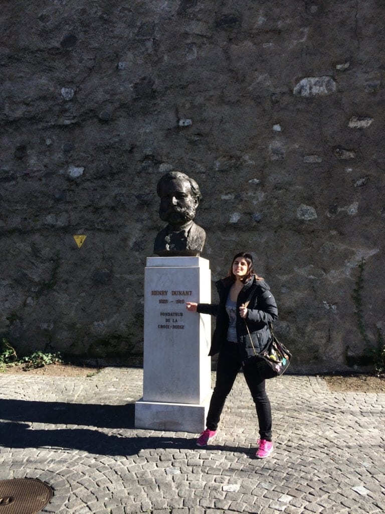 We were in Geneva toward the end of February, and it was unseasonably warm and beautiful. All of the locals were out and about, walking, running, and laying out on blankets on the grass. The sun sparkling on the lake really made the Jet d’Eau stand out! The Jet d’Eau is a big fountain that has become a landmark for Geneva, and it is almost always running during the day year-round unless there is a frost. Last August, the fountain celebrated its 125th anniversary!