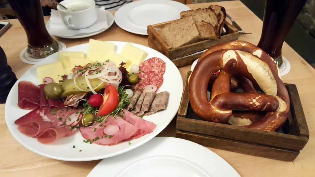 We ended the afternoon with an early Swiss-German dinner of charcuterie and pretzels at Rathaus Brauerei.