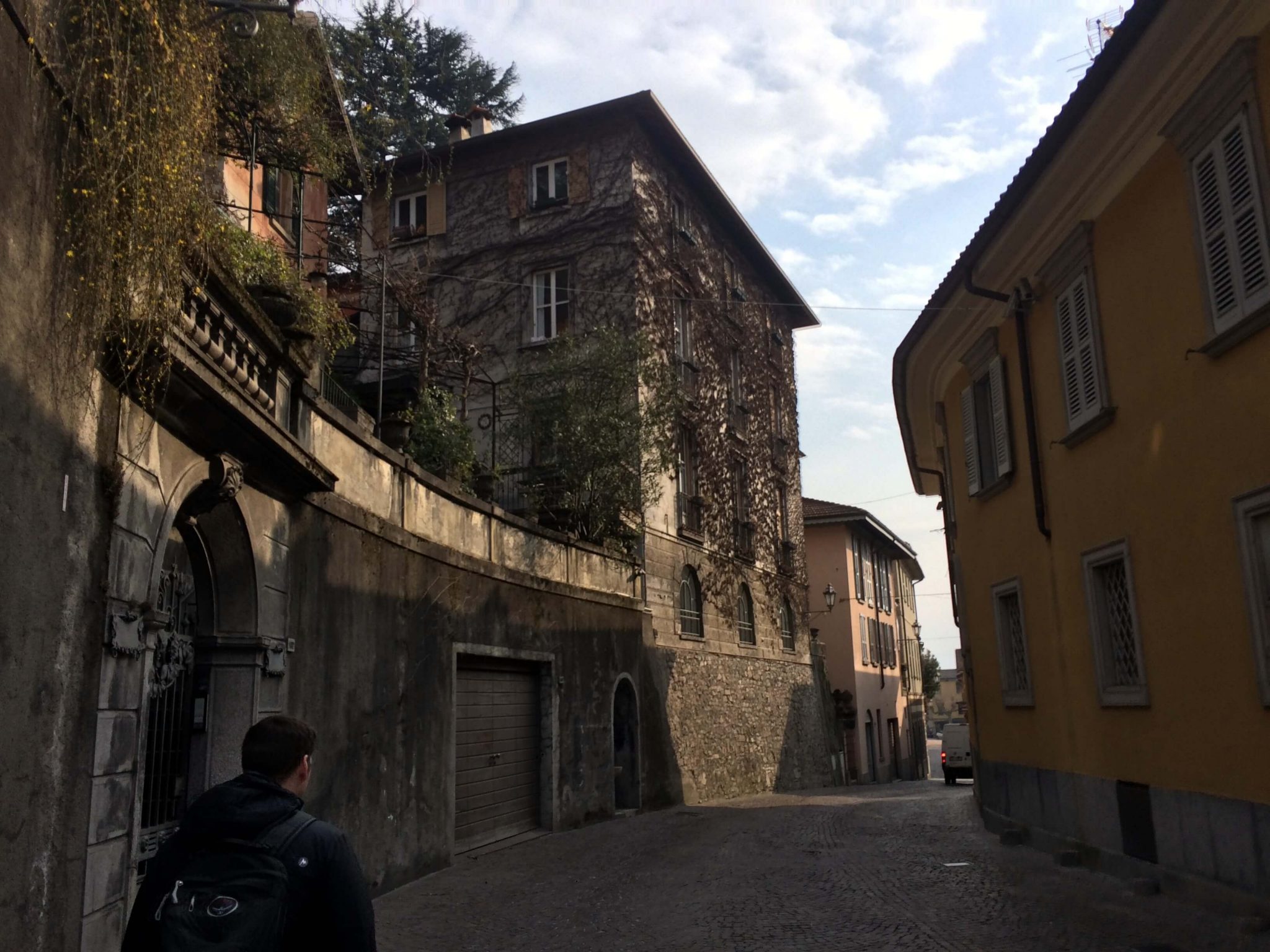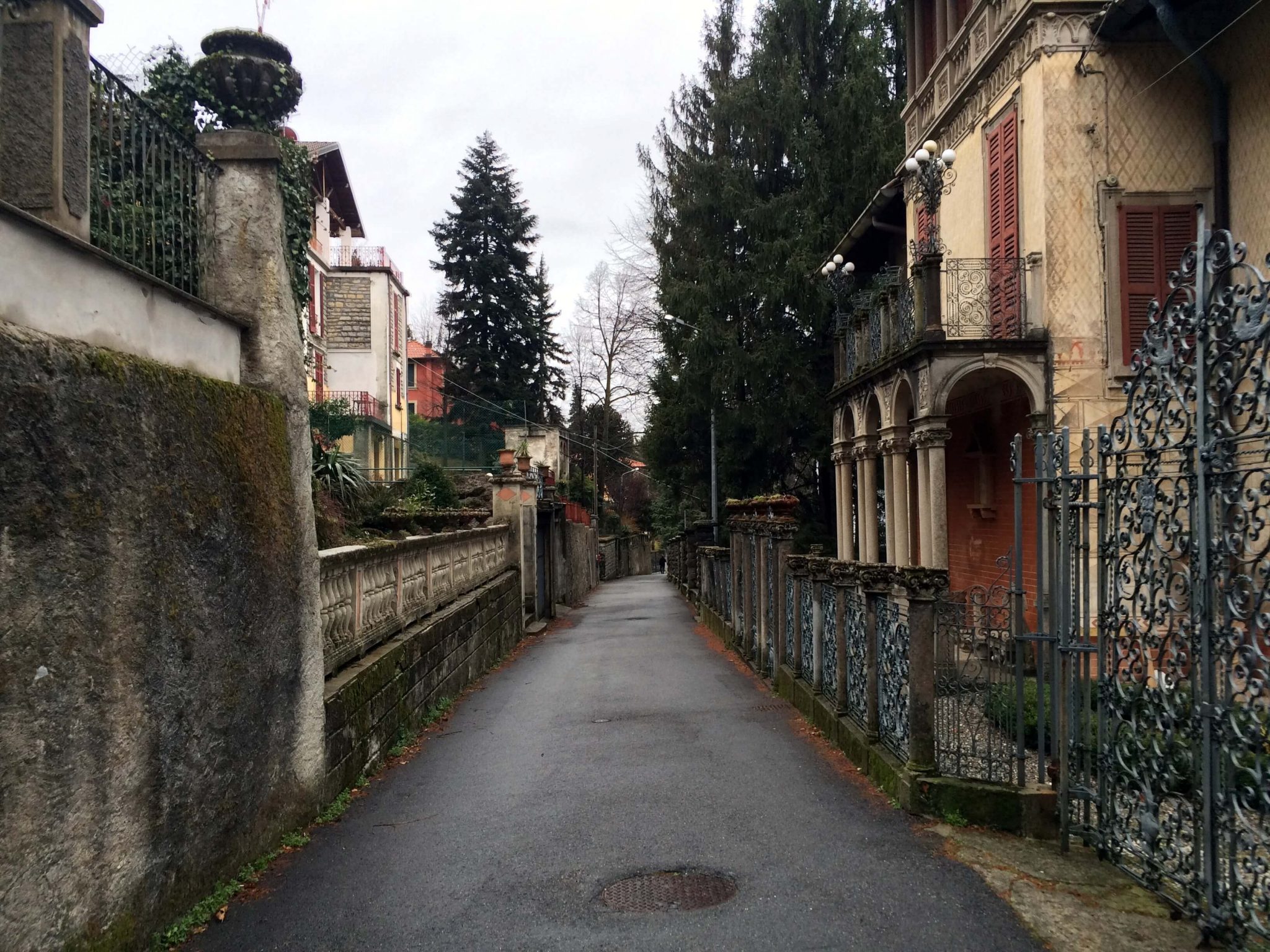 In case you aren’t familiar, a funicular is essentially a tram up the side of a mountain. We ran into them several times in Europe and grew to really enjoy them because there was almost always a fantastic view at the end. The Como Funicular was no exception. At the top, we were not only greeted by a stunning view of the town and lake, but we also found a gorgeous neighborhood full of stunning homes all “closed up” for winter. It appeared none of the residents of this neighborhood were home, but that added to the “enchantment” of the area. We spent a lot more time exploring up there than we had planned, but it was definitely worth it.
