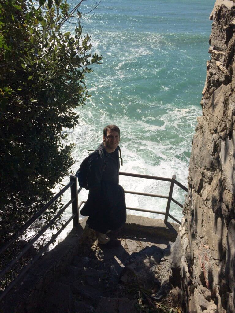 Before hitting the trail, we spent some time enjoying Vernazza in the morning hours. There is a pretty little church by the coastline that we went inside, and we enjoyed sitting by the water and watching the waves crash in.