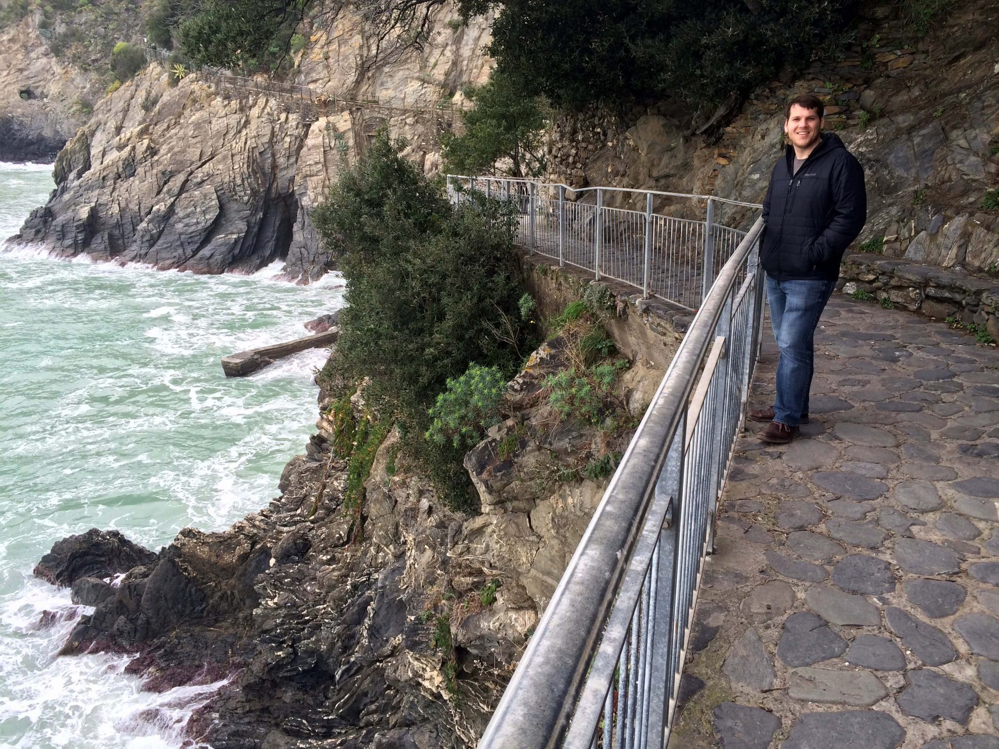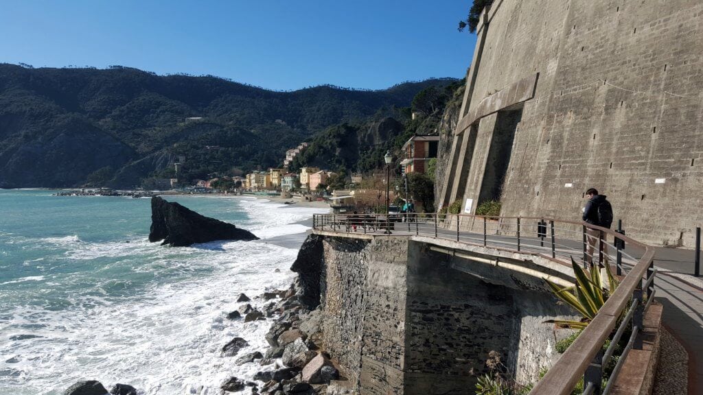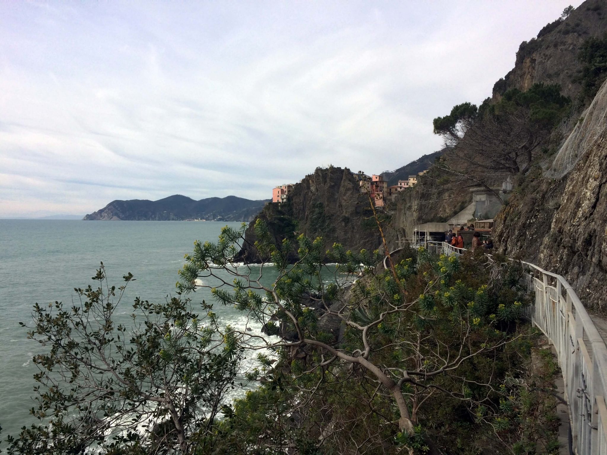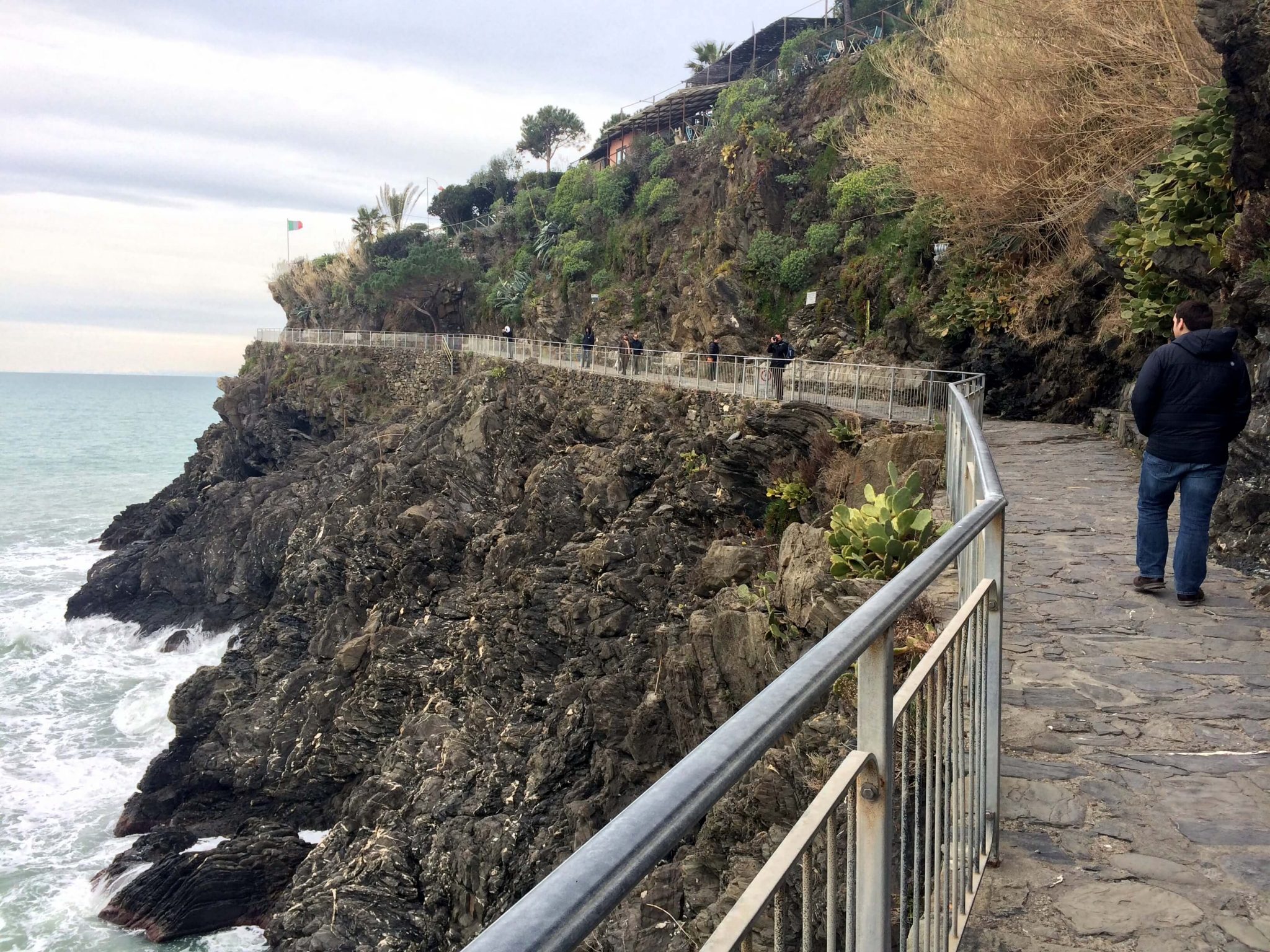 Before leaving Cinque Terre, we wanted to peek as far as we could into the famous Via dell’ Amore hiking trail. This trail has been closed due to mudslides since late 2012 and was still closed at the time we were there (late February 2016). As far as I can tell, the trail is still closed today. We walked as far as we could before being blocked by a gate.