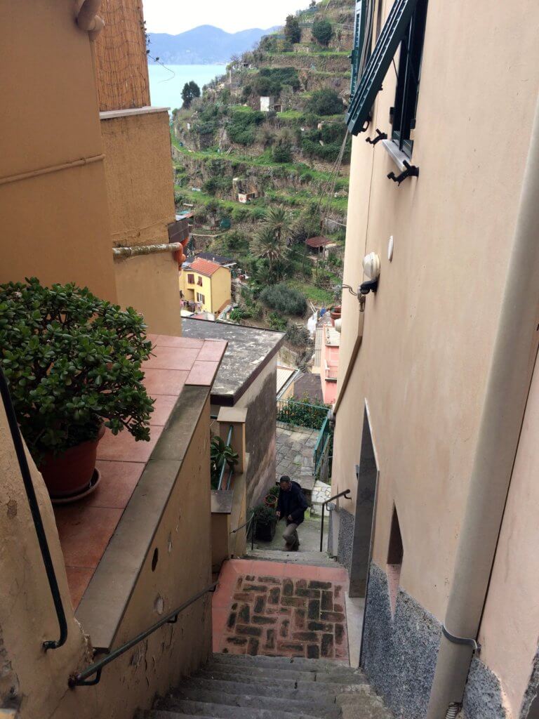 Another great thing about going to Cinque Terre in the off season is that we didn’t have to pay a fee to hike the trail. It looks like some of the trails are actually free year-round, but the section we took costs about $8.50 each during tourist season. Also, apparently the section we hiked is the most difficult with lots of stairs and narrow walkways. We were not prepared for a hike since we only had the clothes we could fit in our backpacks (see my packing list here and Daniel’s here) and the shoes we had been wearing our whole trip in Europe (we only brought one pair of shoes each). But we wanted to do the hike any way, and we both agree that it was well-worth it!