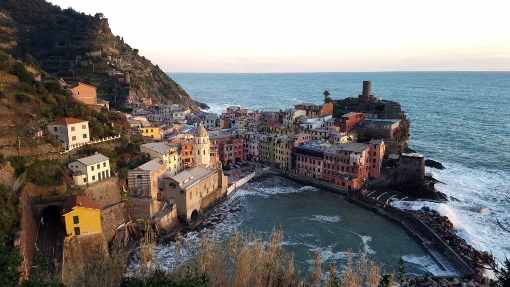 Once we got back to Vernazza, we went straight back up the first part of the trail to get sunset photos of the famous view of Vernazza.