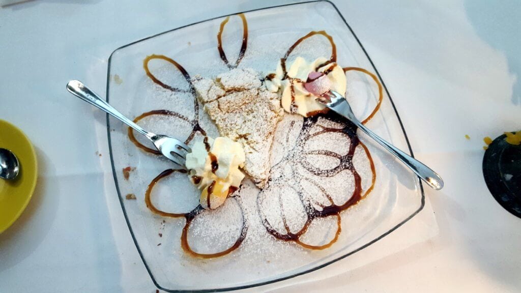 After our hike, we went to have dinner at the only other open sit-down restaurant in town. We had a really good pizza for our meal and pie for dessert. It was the perfect way to end our last night in Cinque Terre!