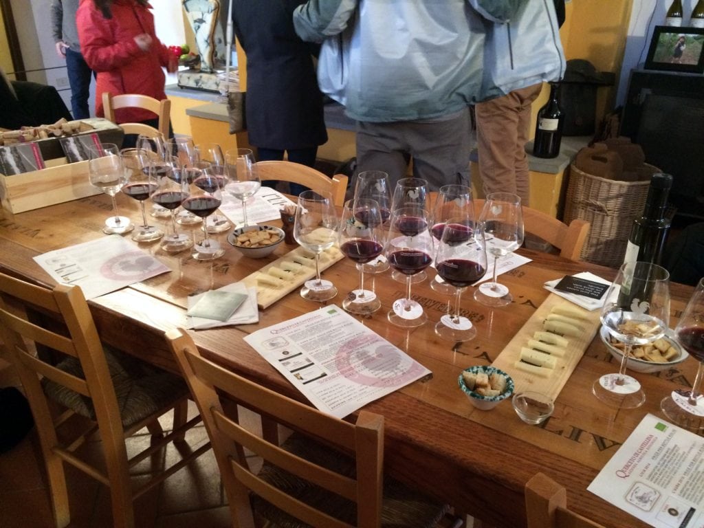 We visited three wineries in the Chianti and Chianti Classico regions and had tastings at each one. At one of the wineries, we had cheese and bread and olive oil with our wine. We were able to tour two of the wineries. Additionally, we stopped at a local Italian butcher for lunch and stopped at another small village to explore.
