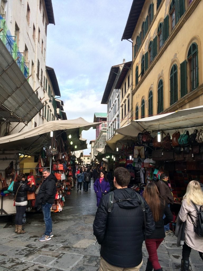 Outside there was craftsman market with primarily leather good vendors. Florence is a popular place to buy purses, jackets, shoes, and other leather goods, but these were unfortunately outside of our backpacker budget. Next time!