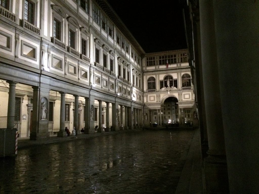 The Uffizi Gallery is a beautiful site at night.