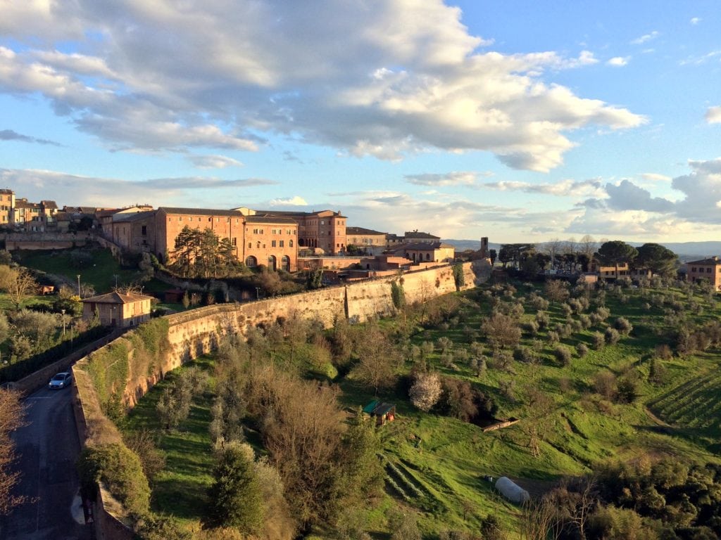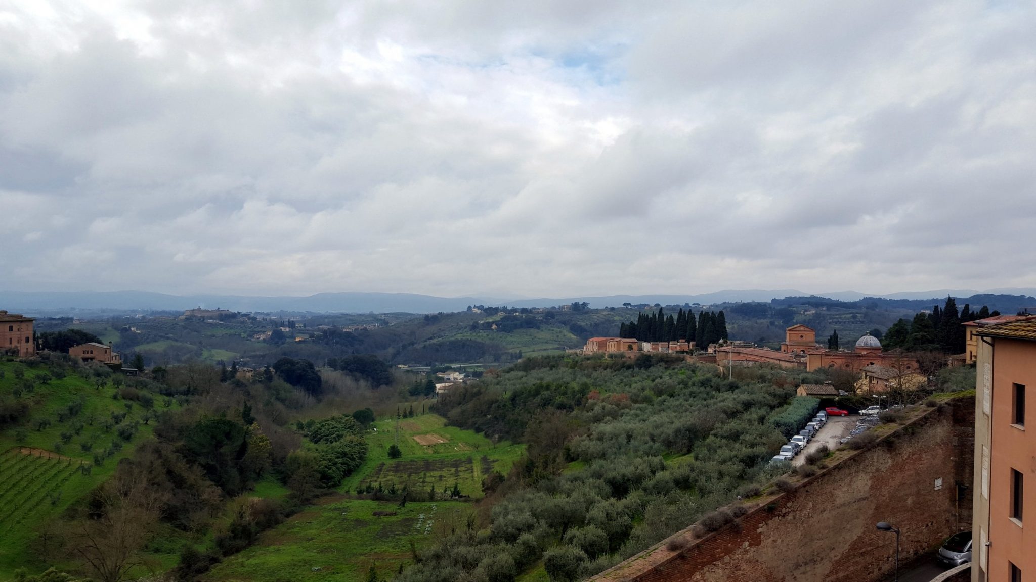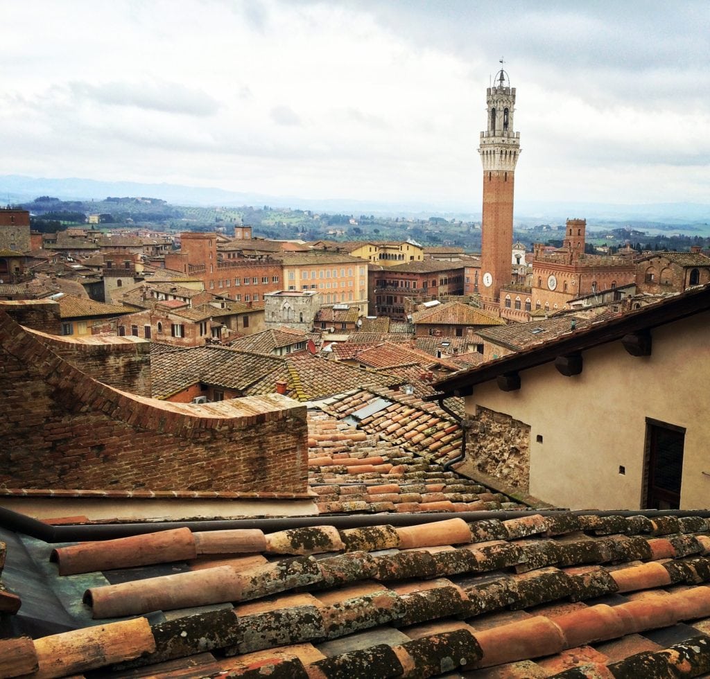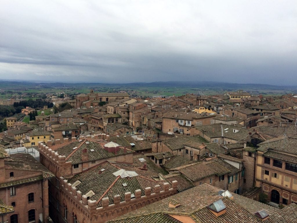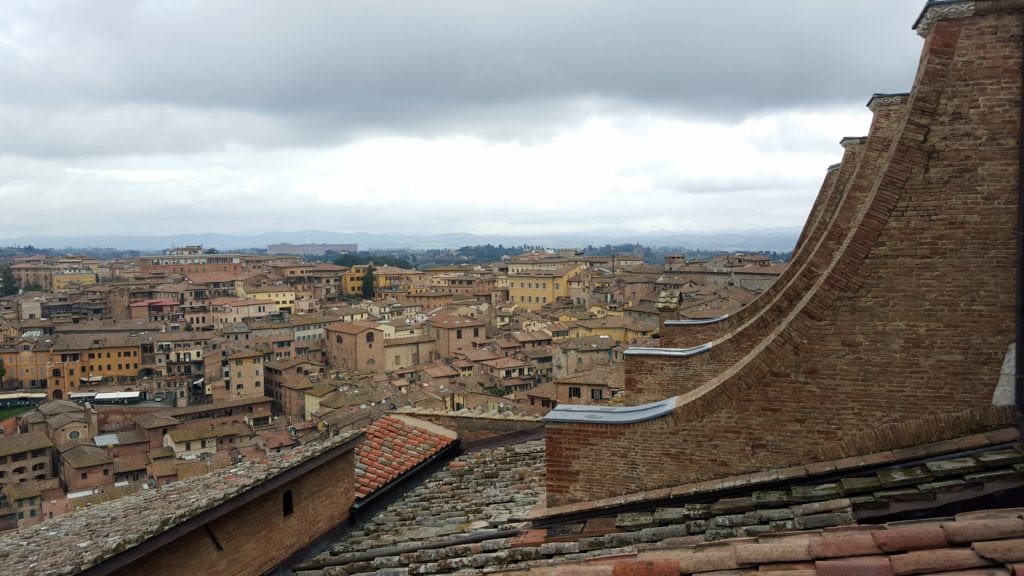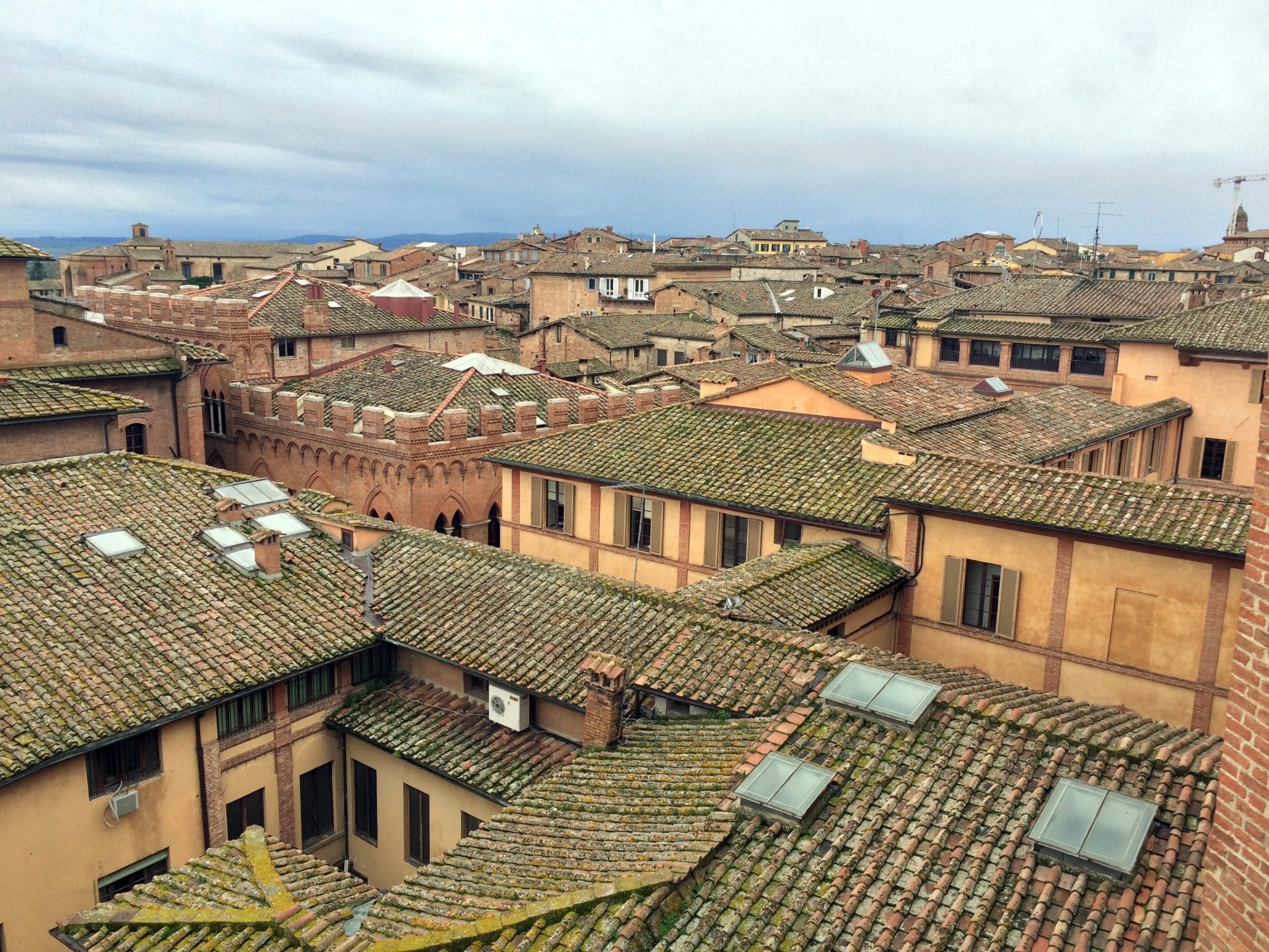 When we first arrived in Siena from Florence, we walked the hilly streets from the train station to this hotel in central Siena. If you are planning to do the same walk, keep in mind that it’s a long one and may not be doable depending on the luggage you are carrying and your appetite for walking. Once settled into our room, we immediately went to check out the view from the rooftop. It was stunning!