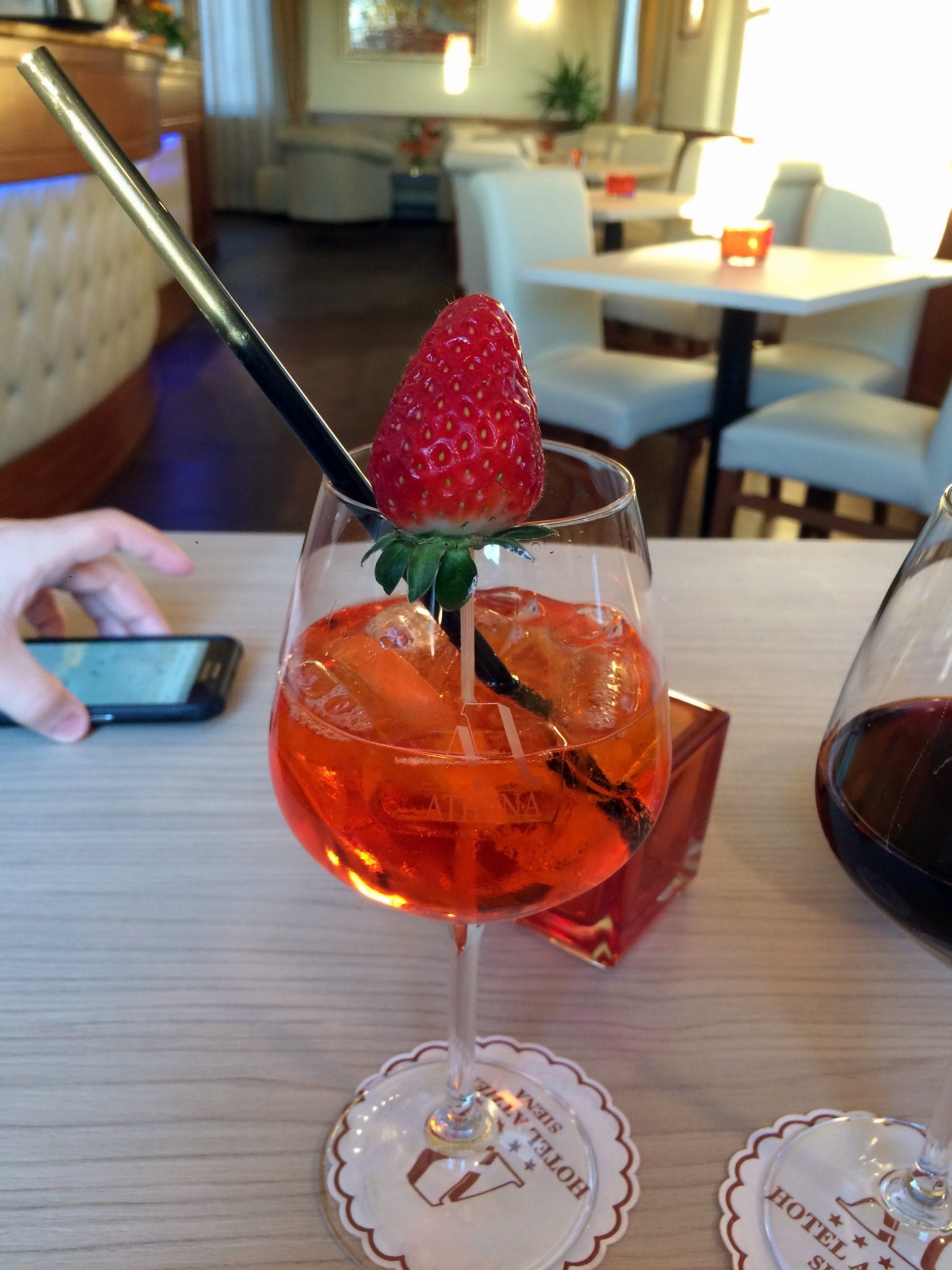 When in Italy, do as the Italians do! We grabbed a quick aperitivo (pre-dinner drink) at the hotel bar. I took this opportunity to try out an aperol spritz (see below).
