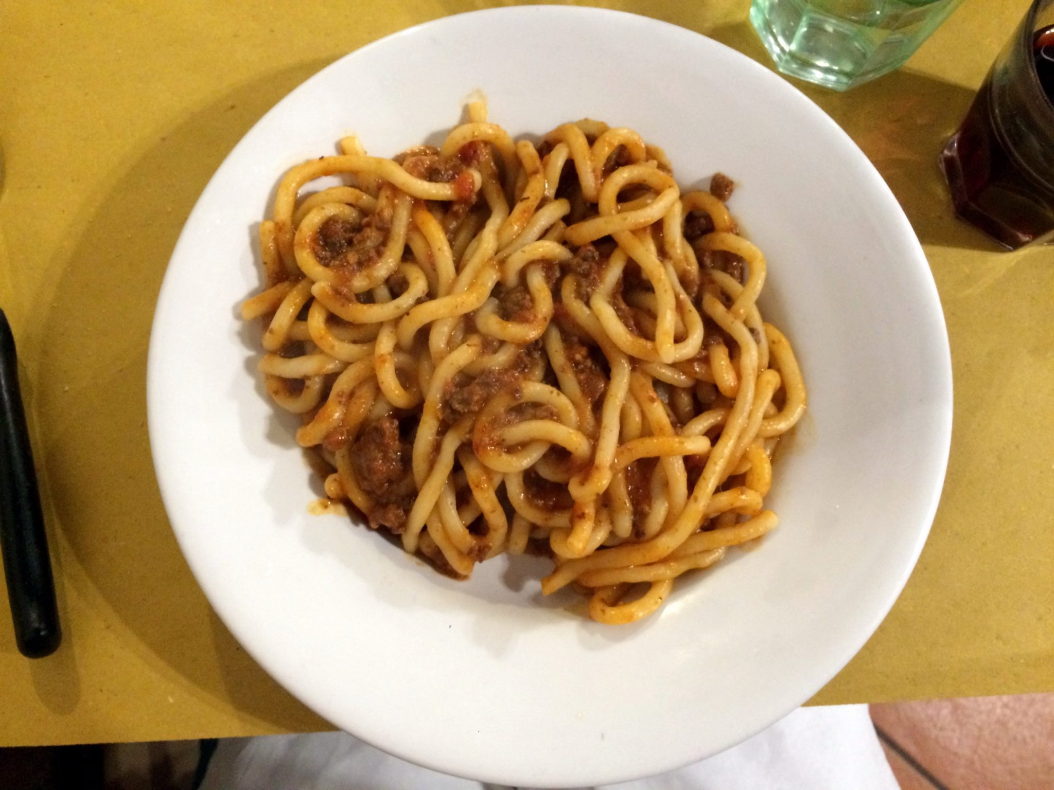 The food was fantastic, and we enjoyed visiting briefly with the owner about his restaurant and his life in Siena. We started with a plate of pecorino cheese drizzled with honey, and we each had pasta dishes for our entrees. It was here that I first tried pici, a thick, hand-rolled pasta that actually originated in Siena itself. It was my favorite pasta dish during all of our time in Italy! I continued to order it when I saw it on menus throughout the rest of our Italian adventure, but I felt this one was the best – perhaps because it was my first time trying it!