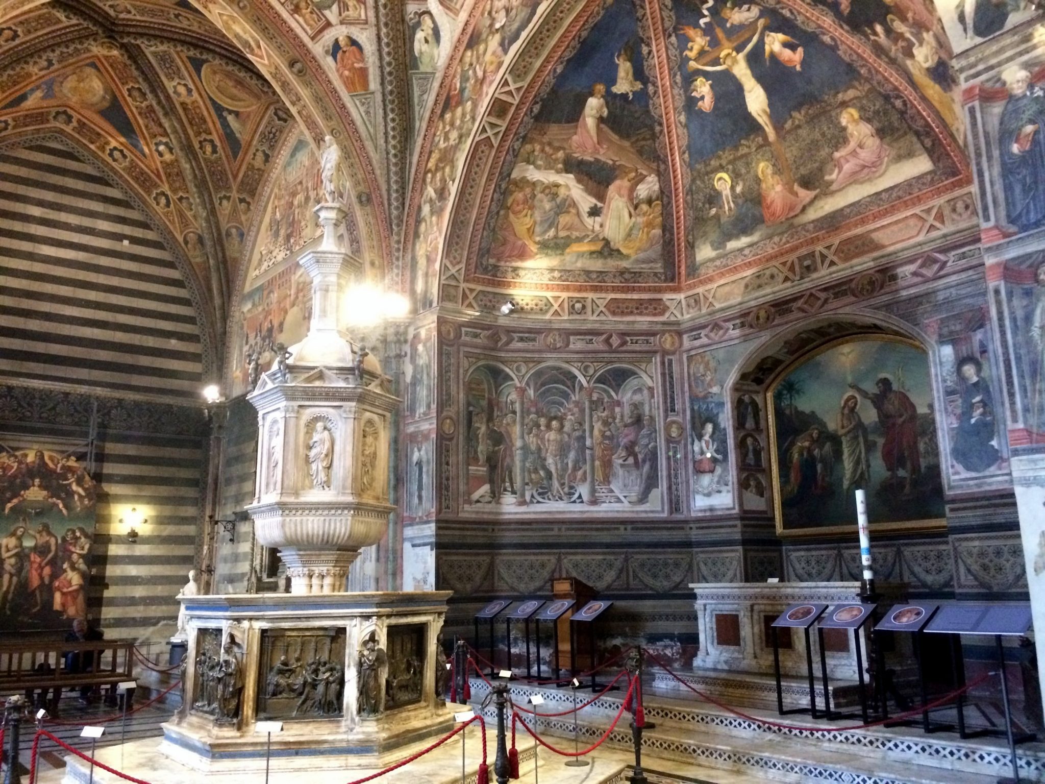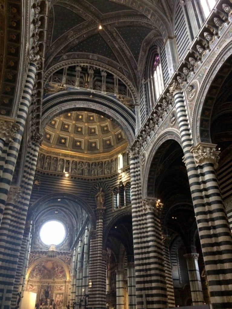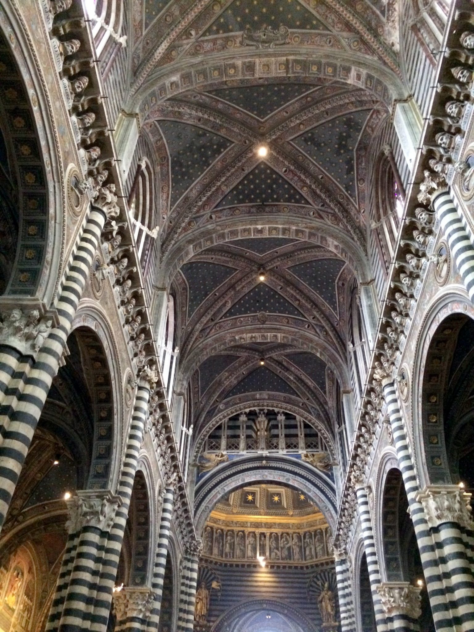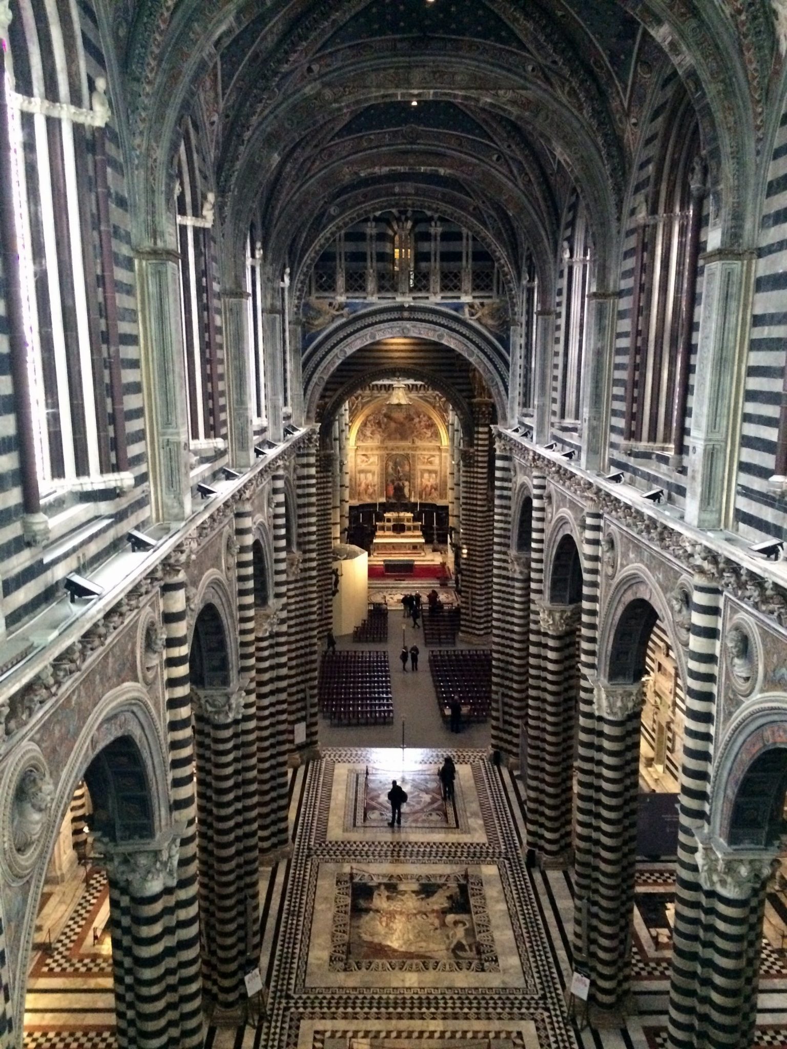 This drop-dead gorgeous Gothic cathedral was built in the mid-13th century. Its alternating black and white striped color scheme on both the exterior and interior make it unique among the other cathedrals we had seen in Europe. Black and white are the city’s symbolic colors. The interior is full of fascinating art pieces – sculptures by Bernini and Michelangelo and many beautiful frescoes and stained glass windows. Floor to ceiling, this place has impressive detail that I could have explored for many more hours than we had time for.