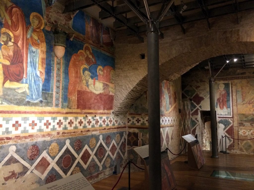 Our next stop was a visit to the crypt under the Cathedral. This “crypt” was not actually ever used for burying bodies; it was likely just an entrance into the Cathedral itself before it became filled with debris. Although it was built at the same time as the rest of the Cathedral, it wasn’t rediscovered until 1999 during routine maintenance. Today, the public can enter and enjoy these long-hidden frescoes telling different New Testament stories. Apparently there used to be a series of frescoes telling the Old Testament story, but those have since been destroyed.