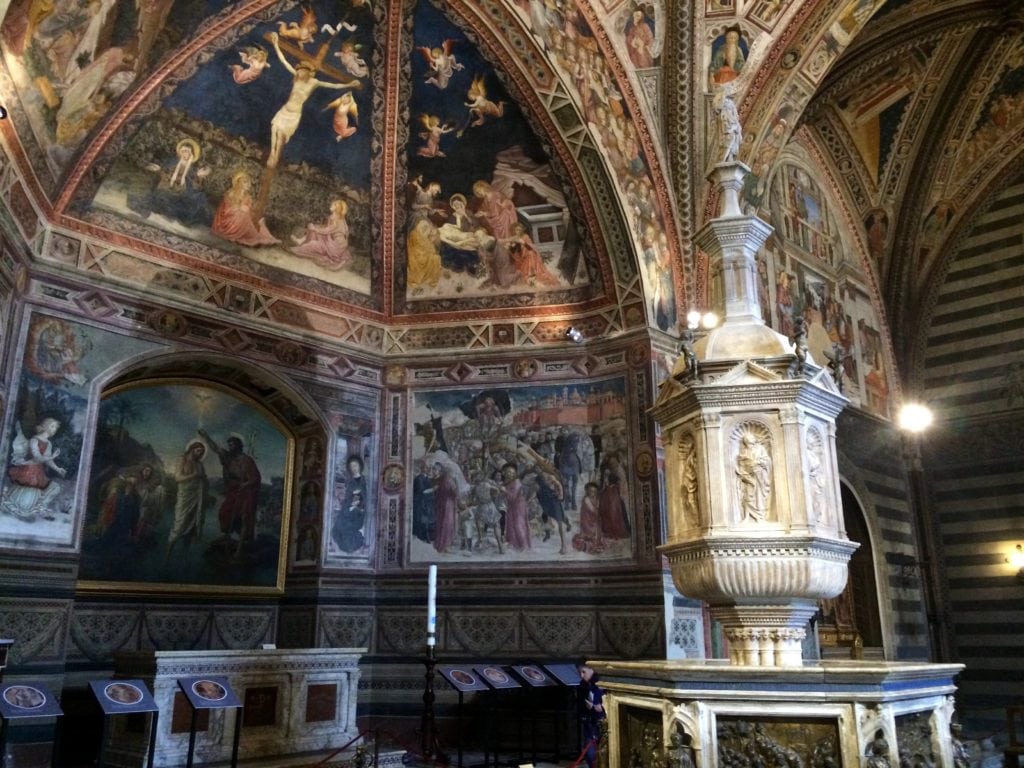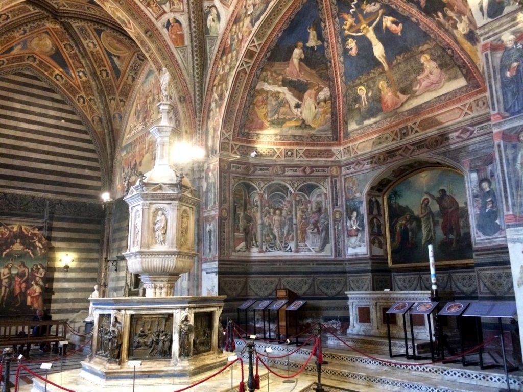 Then, we left the Cathedral and went down the gorgeous marble staircase to our next stop on the tour of the Siena Cathedral complex!