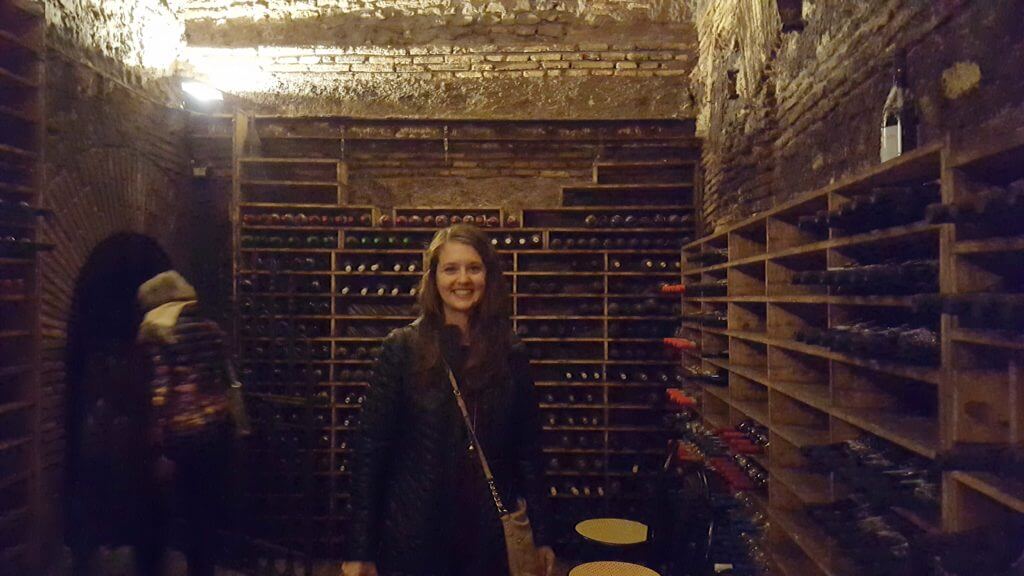 After taking a break at the hotel, we headed right on back to Trastevere for our very first food tour (ever!) – the Twilight Trastevere Food Tour by Eating Italy. It’s hard for me to believe that this was our first food tour since we have taken so many over the past two years, but this tour specifically is what ignited our obsession for food tours. I truly believe that touring a city through its food and the stories of the people behind the food is one of the best ways to start to understand a culture. I won’t go through all of our stops on the tour because there were eight stops over four hours. We had a wonderful night getting to know new people both on the tour and at the family-owned businesses while consuming Roman street food, the best wine and cheese, pizza, homemade cookies and gelato, and other creative Roman food concoctions. We even tasted a Nero d’Avola wine in a wine cellar that is older than the Colosseum (see dark, fuzzy photo below). If you are going to Rome, please do yourself a favor and take this tour!