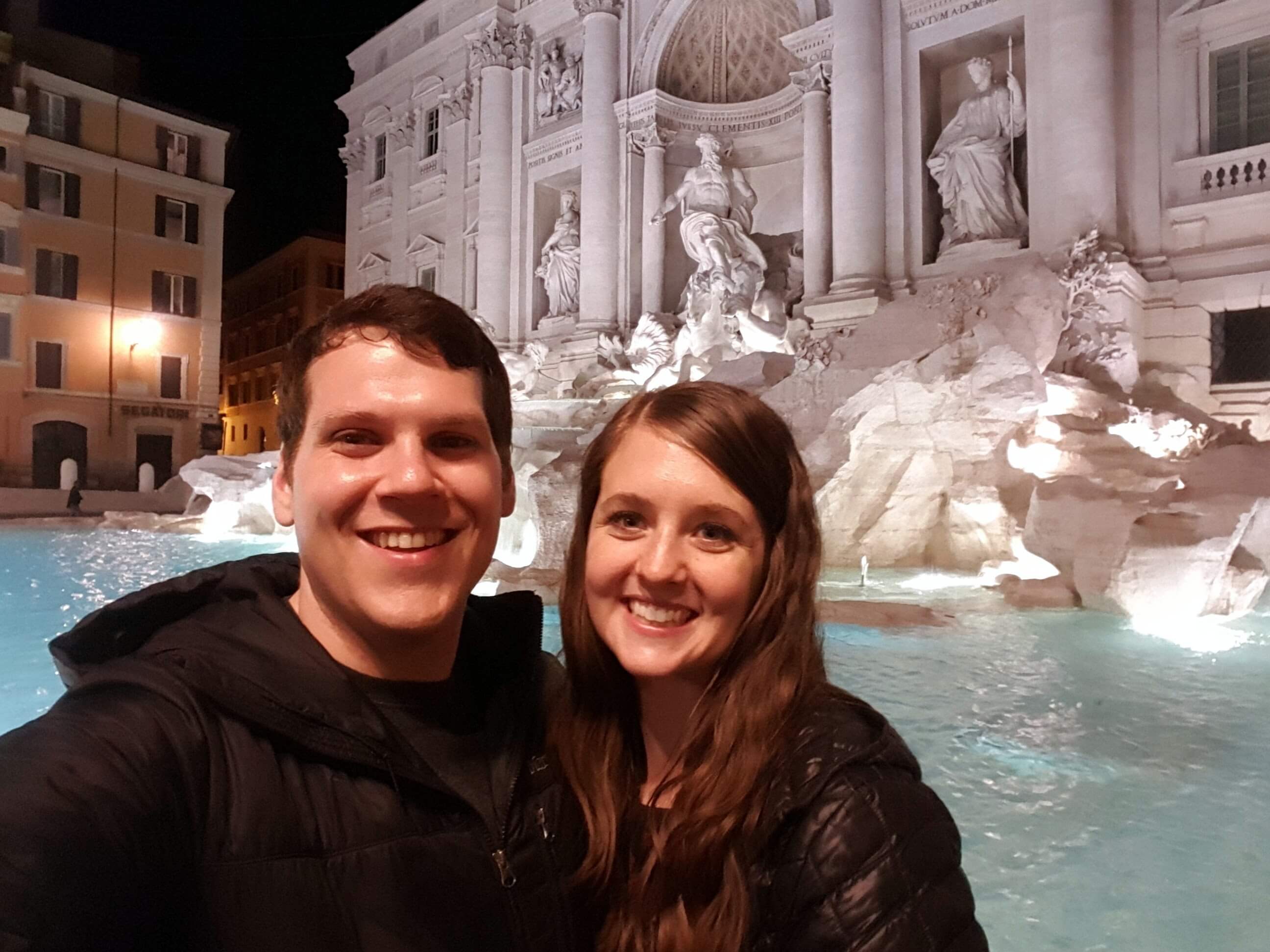 On our way back to the hotel after the food tour, we stopped by the Trevi Fountain to see it at night. It is so beautiful all lit up! It was also much less crowded than when we had visited during the day the previous afternoon. Click over to this post to read more about the Trevi Fountain and our experience there.
