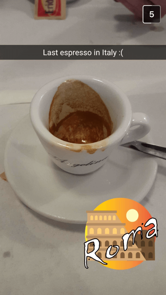 Then we started doing all of our “lasts” in Italy. We had been in Italy for three weeks at that point, so we were sad to say goodbye to many things, one of those being a really good espresso.