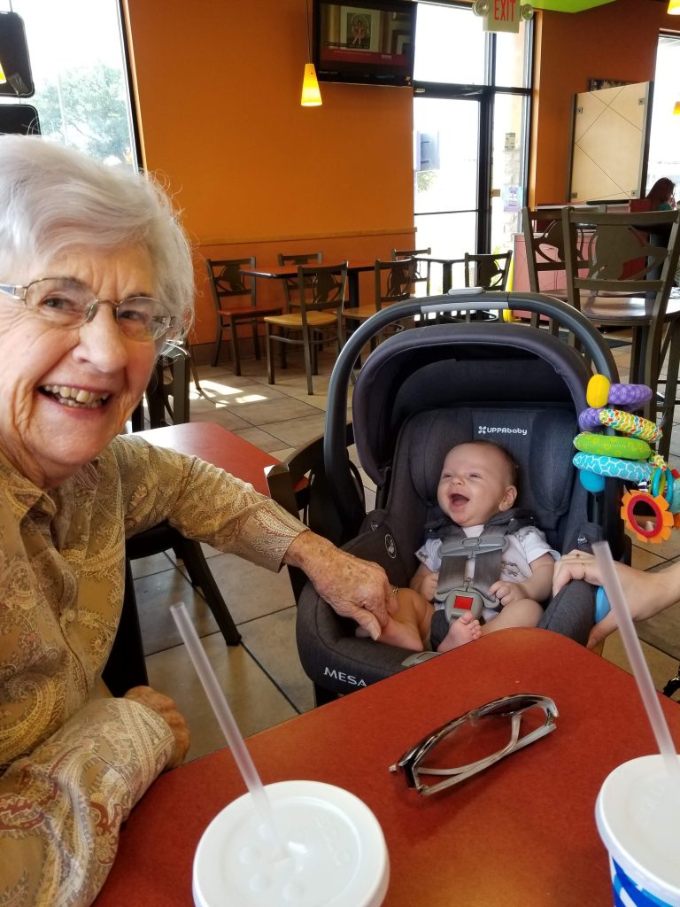 As you can see, I’ve kept things pretty low-key during maternity leave. In addition to the normal days, we have taken Carson to Chicago and Nashville, and we learned he is a great traveler! We’ve done several trips to my parents’ house in Waco and Daniel’s parents’ house in Fort Worth. Carson has visited several times with four of his great-grandparents. We got to take him to a couple of Baylor Homecoming events. We had Carson’s dedication ceremony at church last Sunday which was a very special way to close out maternity leave.