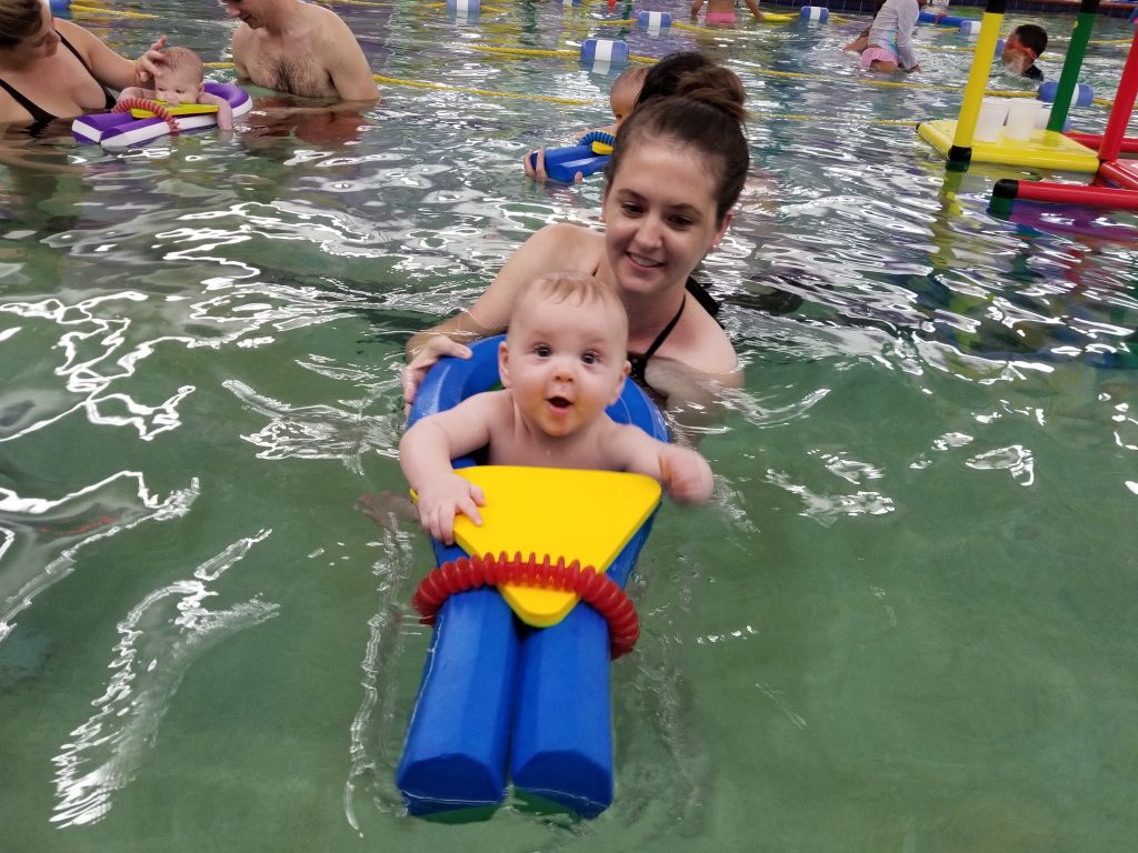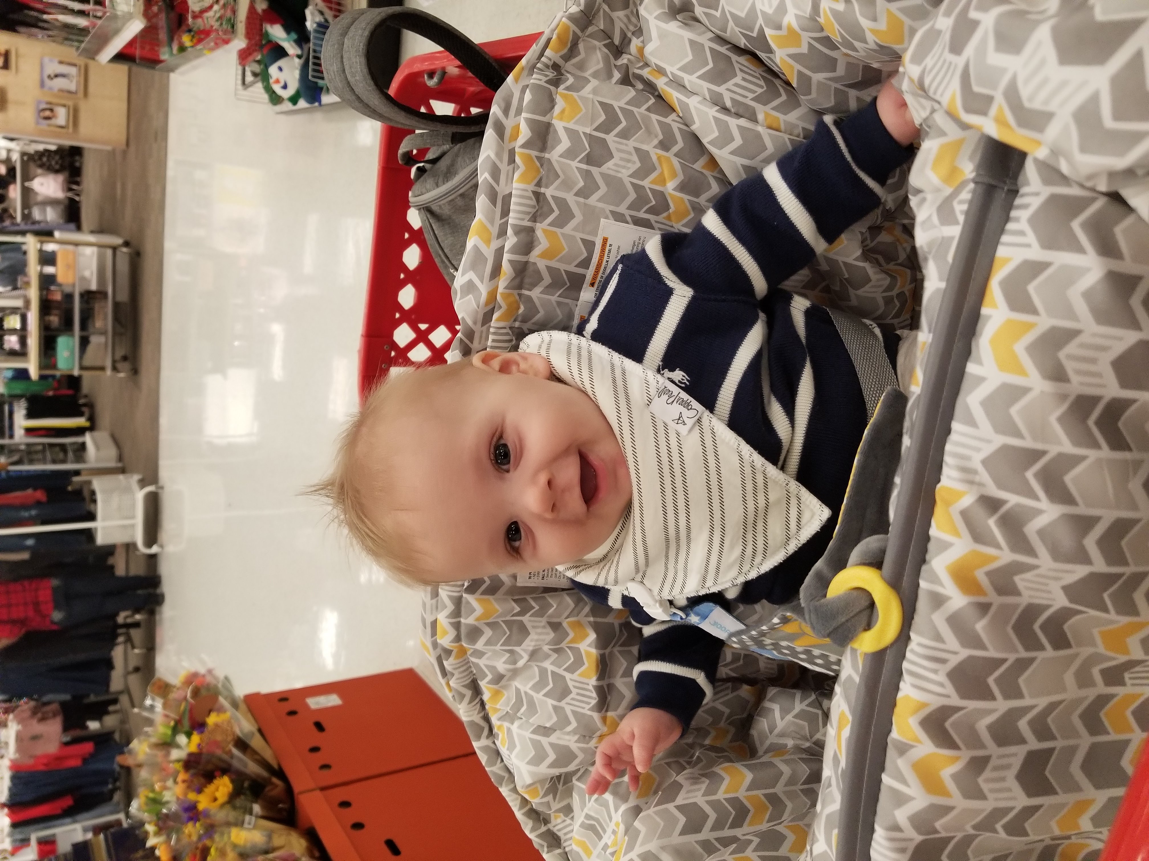 Months five and six have been my favorite. Carson is such a happy baby. He loves seeing new people and taking in all of his surroundings. He can now sit up on his own and has started playing with toys independently, sometimes for as long as ten minutes. He is army crawling already (I can hardly believe it!). He really loves trying new foods – he currently has oatmeal for breakfast and some sort of fruit/veggie puree for lunch and dinner (in addition to his milk). Carson has so much fun at his swim lessons with his sweet baby friends, and bath time is basically his favorite time. I think he is a future musician because he loves listening to music, his toy piano keeps his attention most days, and he couldn’t stop staring at the drummer during a baby music class we went to for Halloween.