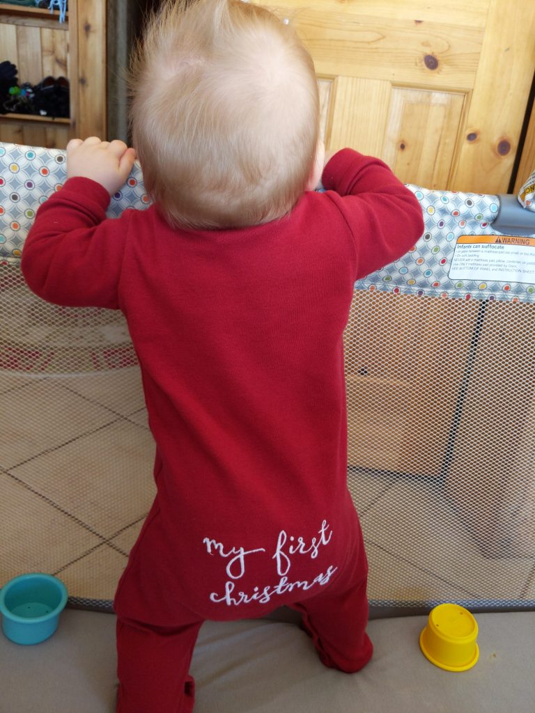 - First time pulling up to standing – Christmas Eve Eve 2018