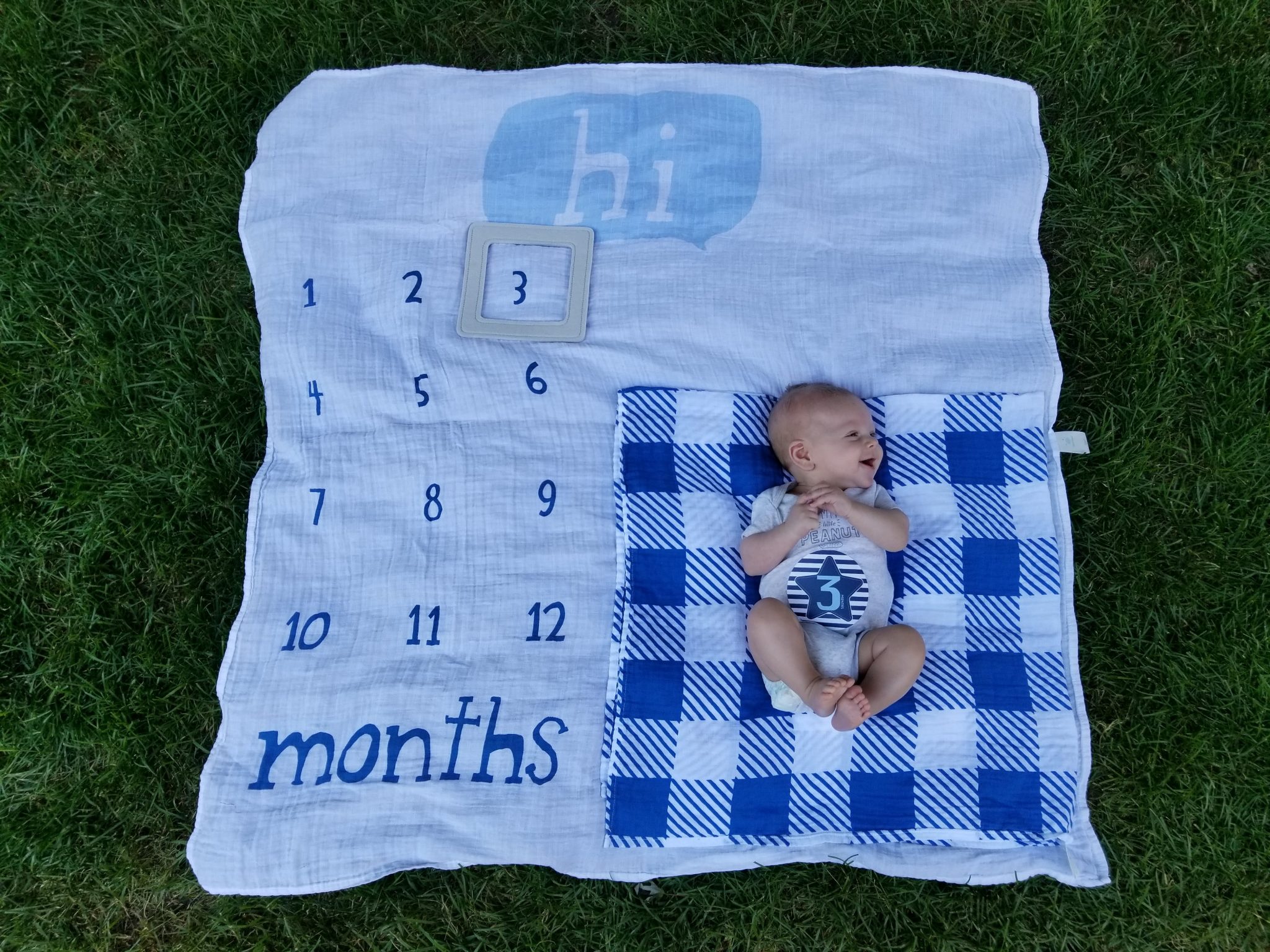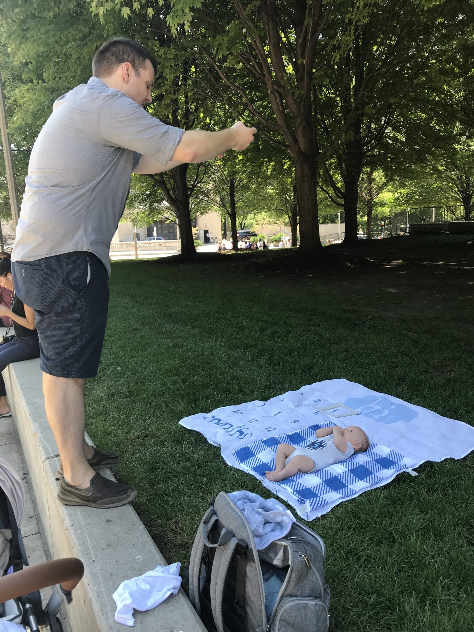 After a quick, sweaty photo shoot by The Bean (there was no shade over there!), we scouted out a shady spot to sit and do our three month photo shoot.