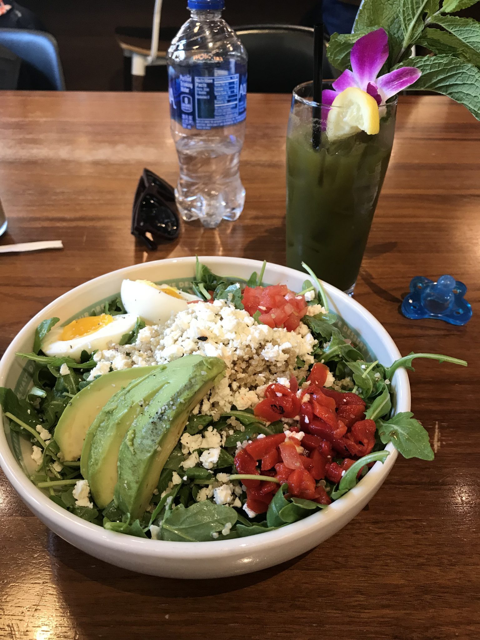 Next we walked to Goddess and the Baker for a relatively healthy and highly Yelp-rated lunch stop. We loved our salads and drinks (juice for me, an iced latte for Daniel), and Carson loved doing some more people watching. There wasn’t room for our stroller, but it was easy enough to fold up and put to the side while we ate.