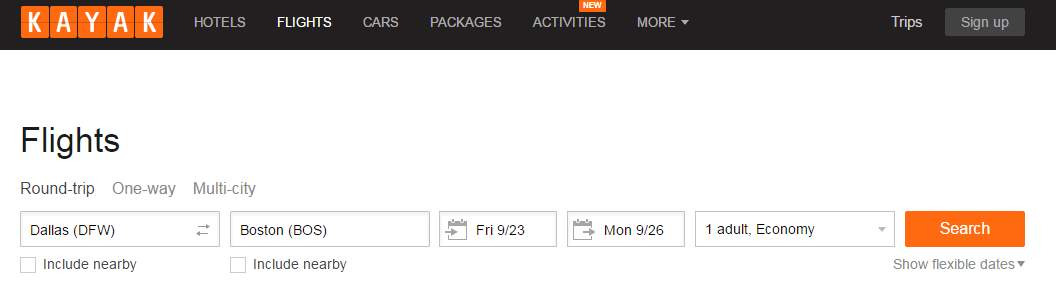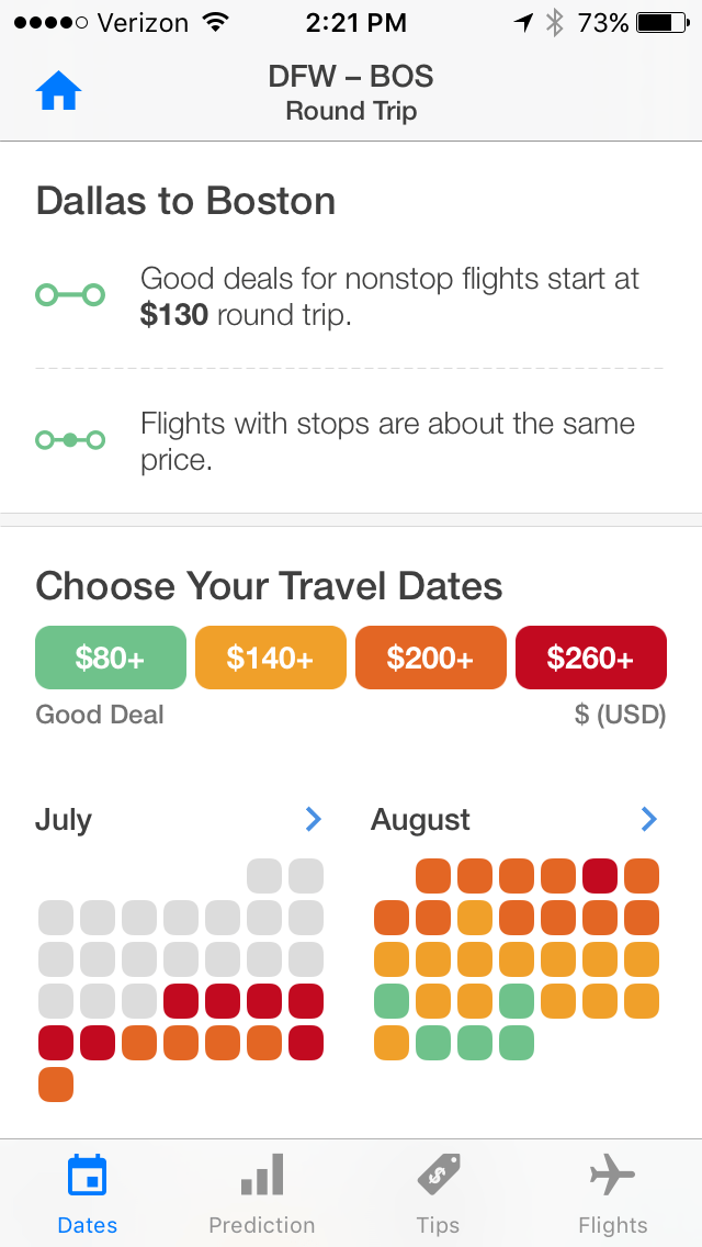 Planning vacations is one of my favorite things to do, so I don’t mind taking the time to get the best results. This process is probably not helpful to someone who doesn’t want to spend more than a few minutes looking for flights – it takes a lot of time over the span of several weeks. However, if you are willing to take the time, you will be happy with your results more often than not. To explain the process, I’m going to use a trip I recently booked as an example. I booked a flight from Dallas-Ft. Worth to Boston for a trip I’m taking with my sister this September.