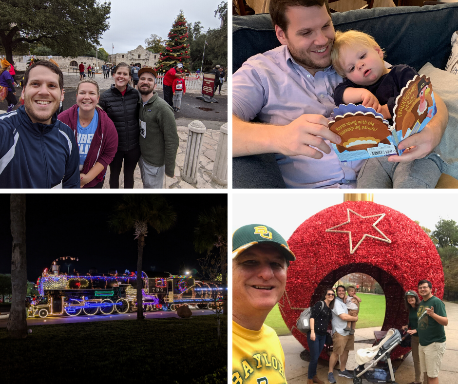 (1) November ended with some more extra special memories because we went to my parents’ new home in San Antonio to celebrate Thanksgiving with my family! Thanksgiving morning began with a Turkey Trot for everyone except me, Carson, and Mom. I love to watch the Thanksgiving Day Parade in my pajamas, so Carson and I did that before I began making a couple dishes for the big meal.