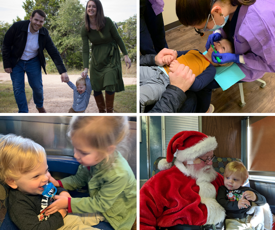 (3) Another major highlight of the month was going on the North Pole Flyer train with our friends Kim, Jordan, and Loretta. It is similar to the Polar Express train rides I’ve seen advertised for several years now. The train was decked out for Christmas, elves made balloon animals and passed out sugar cookies, Mrs. Clause read the North Pole Flyer story, and Santa was available for photos. Loretta and Carson had a great time together!