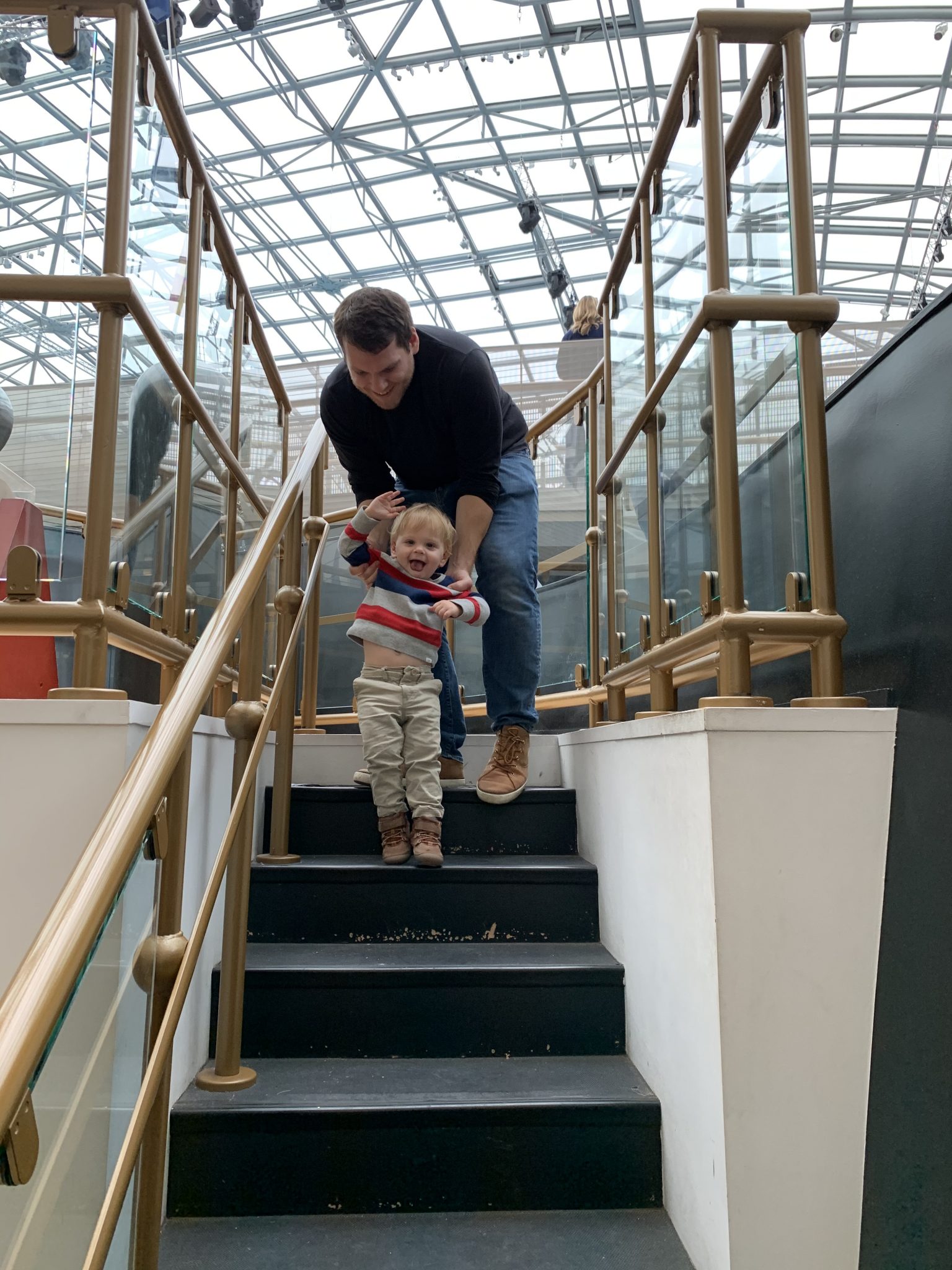 After spending time in the free children’s sections and trying to push the stroller through some of the regular exhibits in the museum (with a grumpy child), it was finally our turn for the children’s gallery! Scroll through the photos below to see how much fun Carson had. I think any young child who is able to walk would have a great time. They don’t allow children over the age of 7, but parents can enter with their children. Children’s tickets cost £3.00, one adult with a child is free, and any additional adults (with children) are £3.00.