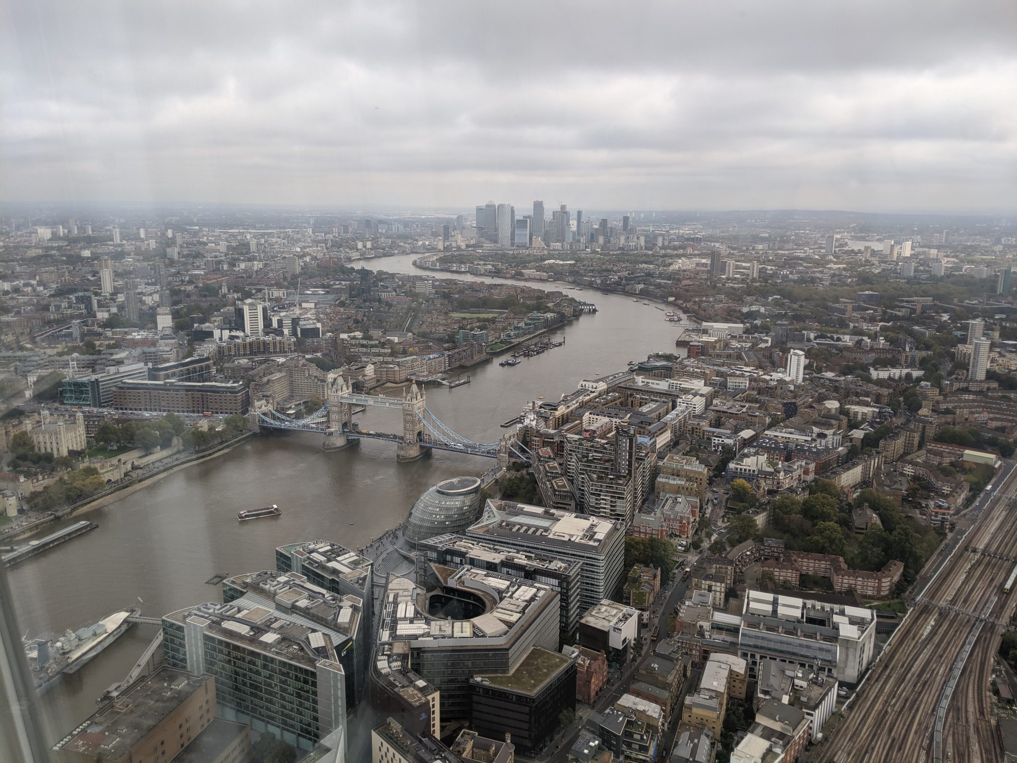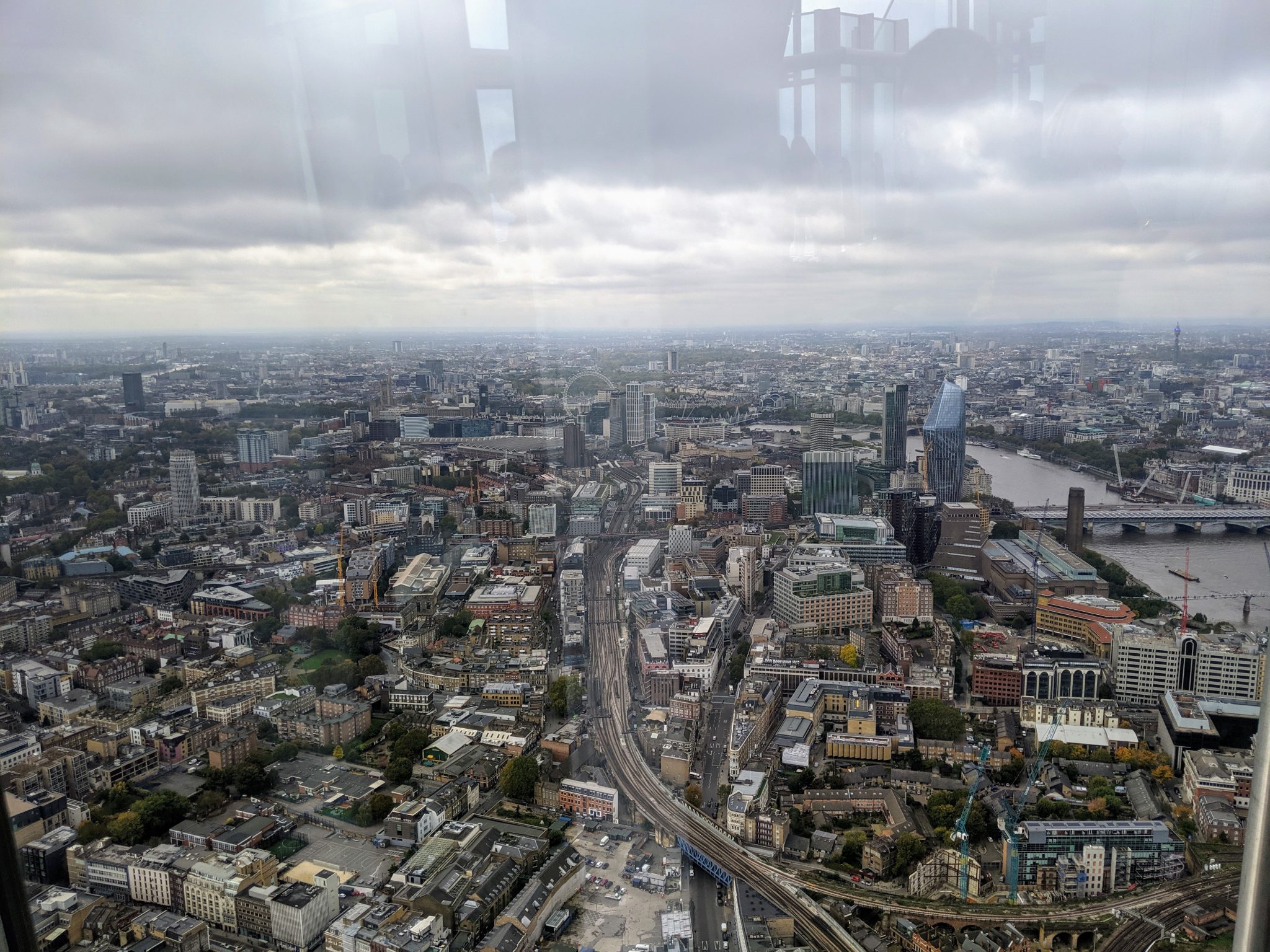 Stop #2 on this Sunday was a visit the top of The Shard, the tallest building in the UK. Tickets are expensive – a standard ticket to the top runs about $33 USD per adult, but there are lots of discount sites that offer tickets. Children under 3 are free. We had avoided this stop on previous trips to London because of the price, but I’m glad we did it this time. The views from up there are pretty incredible.