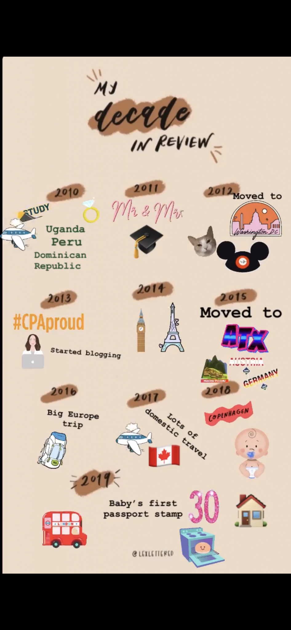 Finally, I wanted to share my “Decade in Review” that I posted to InstaStories. This took a long time to put together, so I wanted to save it for more than the 24 hours on InstaStories!