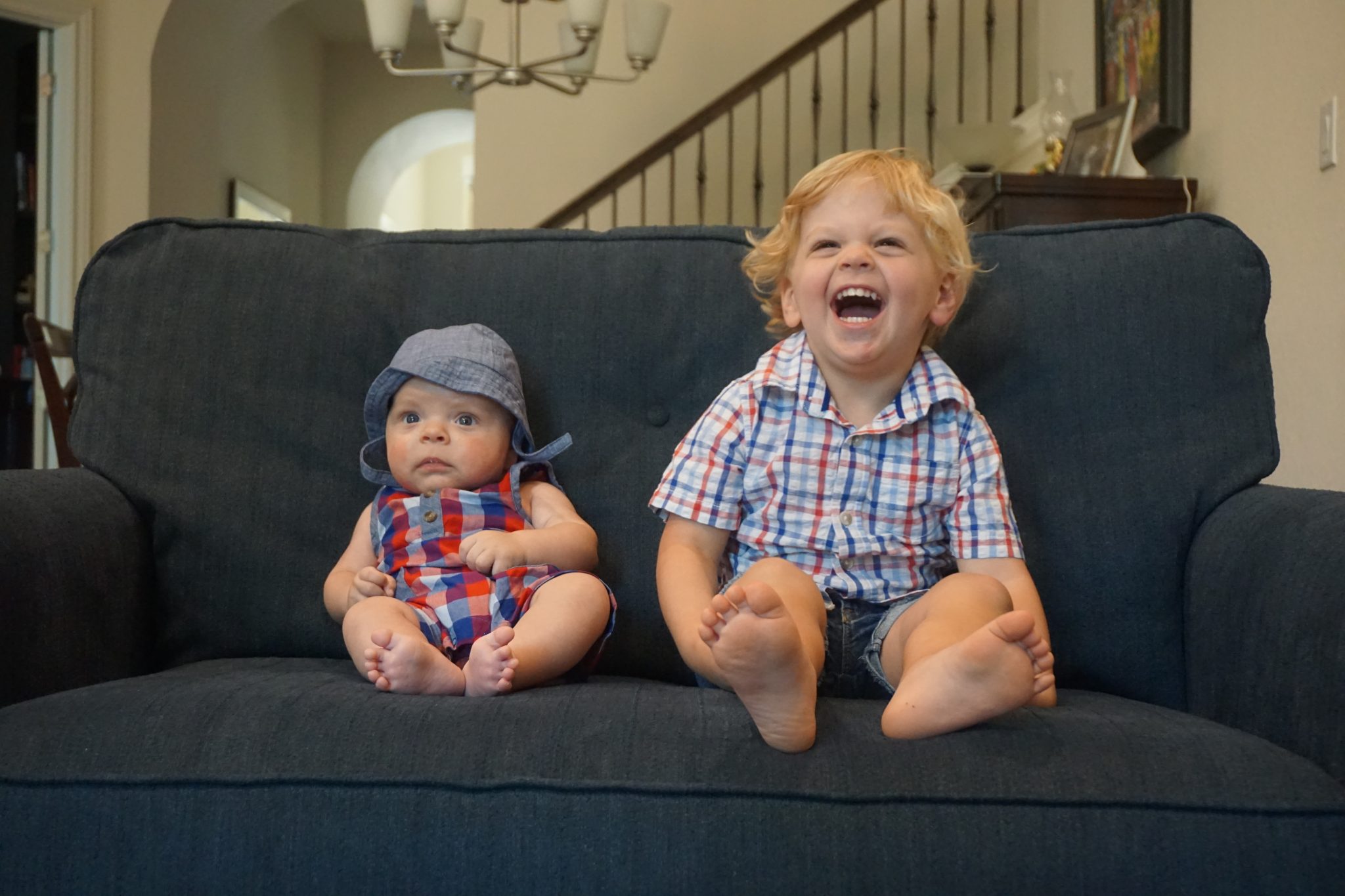 Carson is doing a great job as Big Brother. He loves to help bring things like pacis and blankets to help with the baby, and he will sometimes blow kisses to him. He’s never once acted angry toward Caden, so that’s a win in my book!