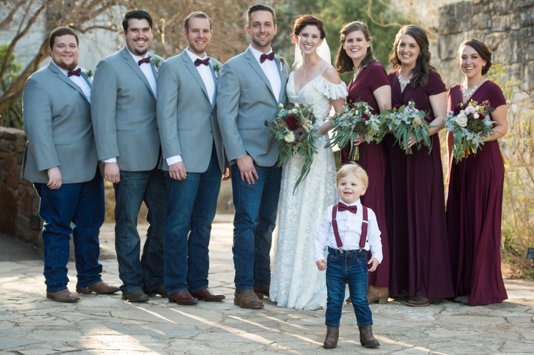 Look at that gorgeous bride and handsome groom! And that little ring bearer is pretty darn cute too… Side note: One of my scariest parenting moments took place right after this. Carson had his first big injury when he took a tumble on the concrete stairs. He had a big goose egg on his head. After talking with my cousin who is a paramedic, we decided we didn’t need to run him to the emergency room and miss the wedding. I’m thankful we made that decision because he was just fine and actually was able to complete his ring bearer duties with a smile just 30 minutes after the accident.