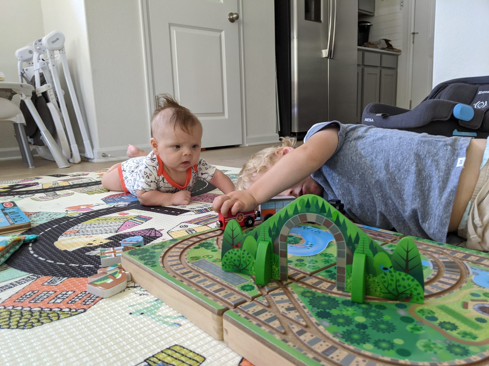 … set up a temporary baby gate situation while we tried to figure out a good play area to contain our new crawler…