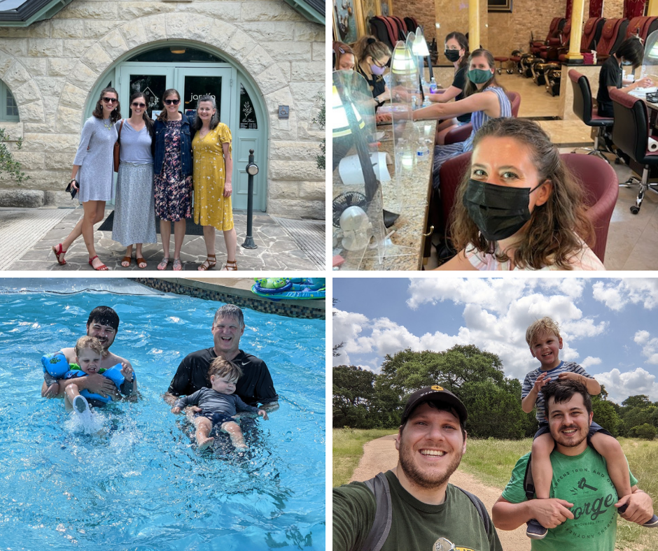 June was great. The celebrations from May continued on. In the middle of the month, my sister and brother-in-law (Ellen and Lane) celebrated their one year wedding anniversary with the big wedding celebration/reception they were supposed to have in 2020. It was so much fun to celebrate this beautiful couple! And we ended the month with a girls’ weekend at my parents’ house (Mom, Ellen, Elizabeth, and me), and a guys’ weekend at our house (Dad, Daniel, Carson, Caden, and Ben).